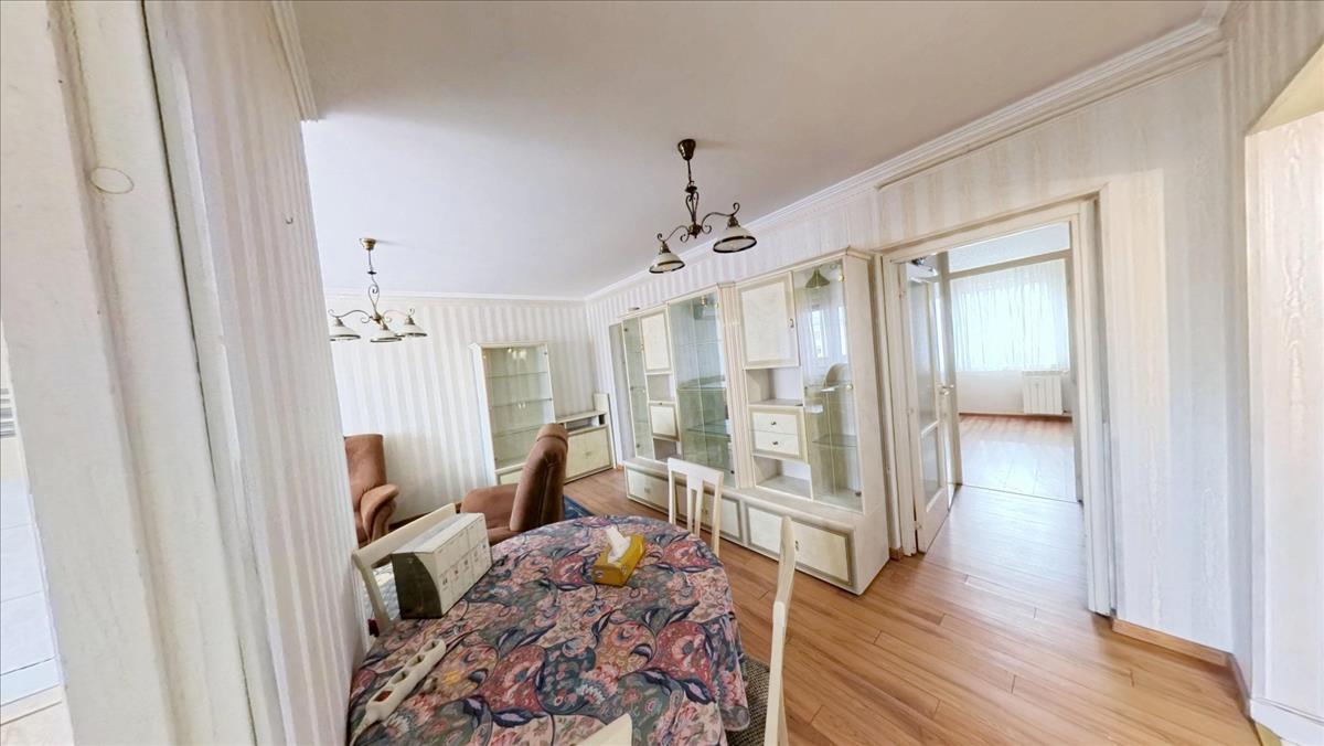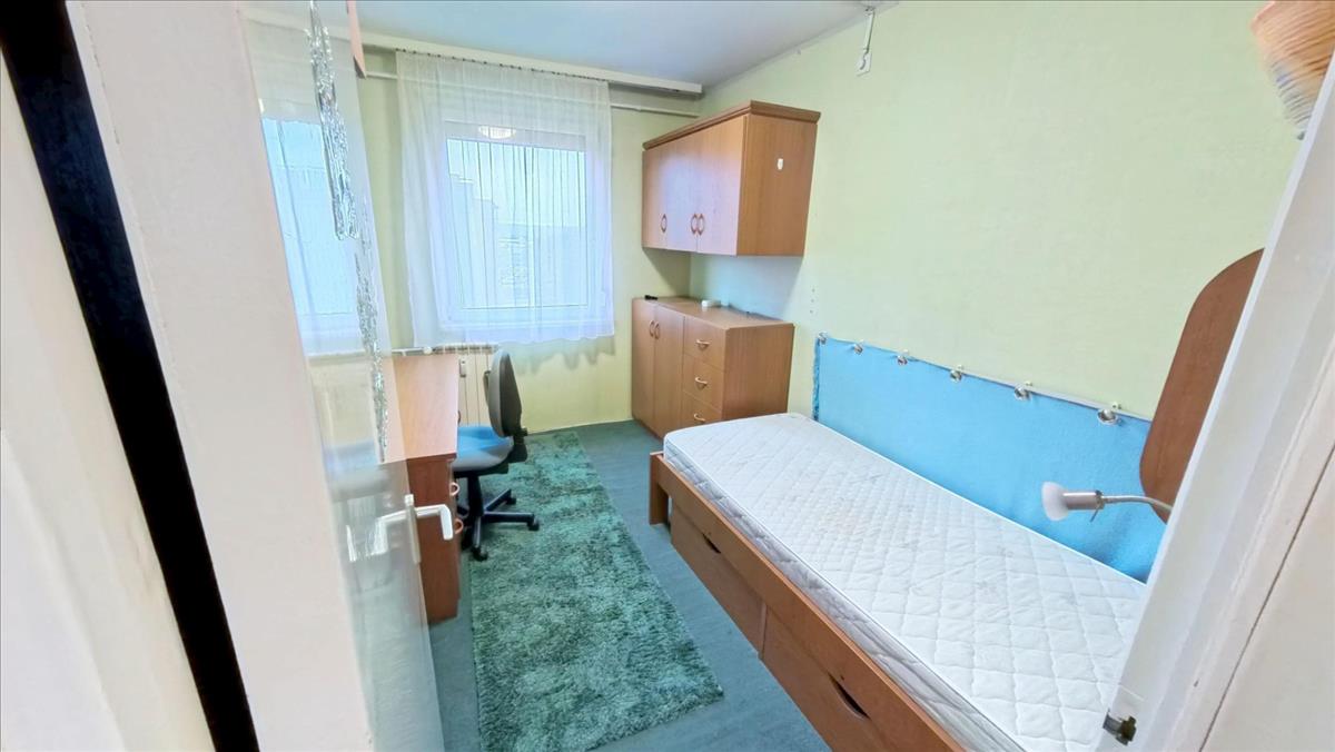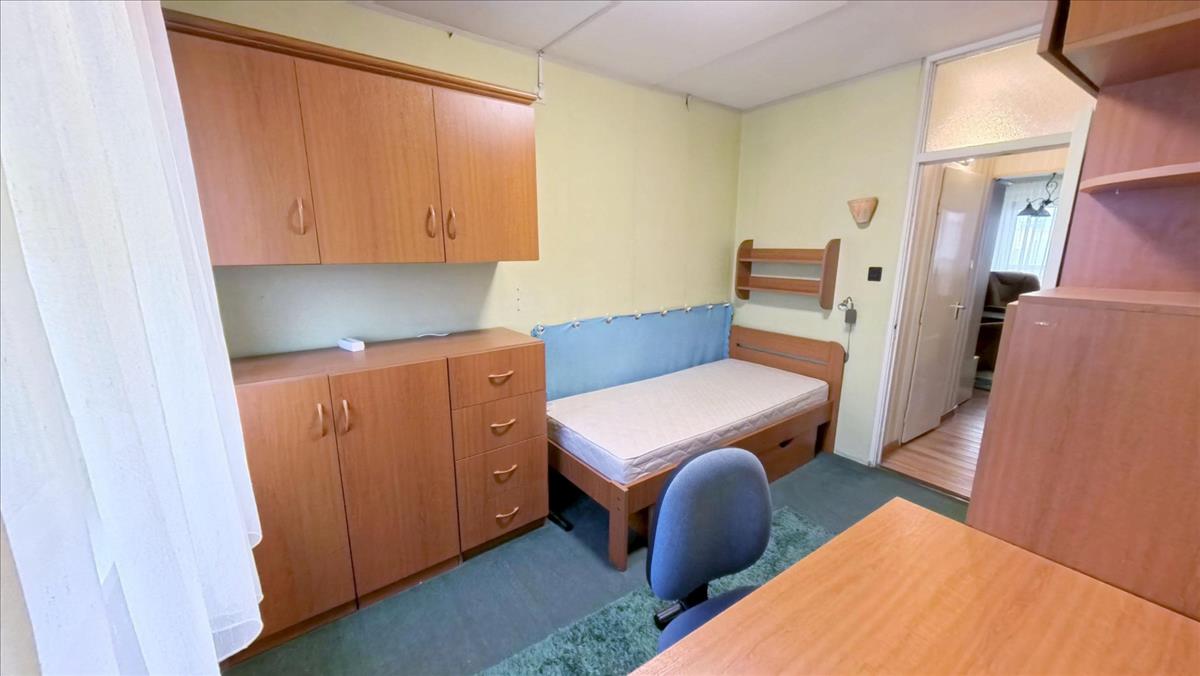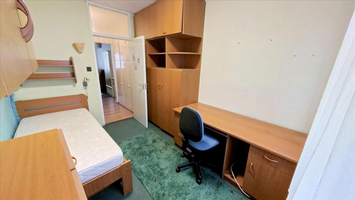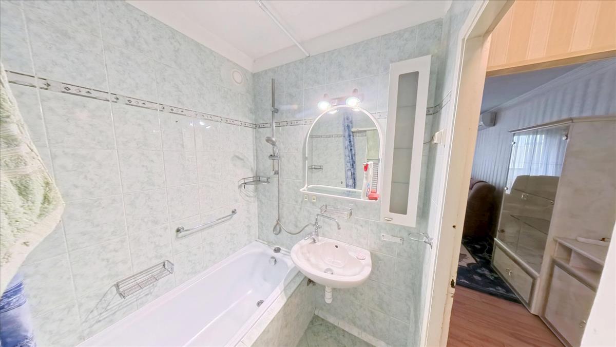 A közlekedőből nyílik a fürdőkádas fürdőszoba. Ebben a közlekedőben is mennyezetig érő beépített szekrény segíti a holmik tárolását. Az ablakokat, az erkélyajtót hőszigetelt műanyag nyílásszárókra cserélték, melyeket alumínium redőnnyel, szúnyoghálóval is elláttak. a nappaliban, 2 hálószobákban laminált lap, 1 hálószobában szőnyegpadló, a konyhában, fürdőben, WC-ben, a közlekedőkben kerámia a padló burkolat.