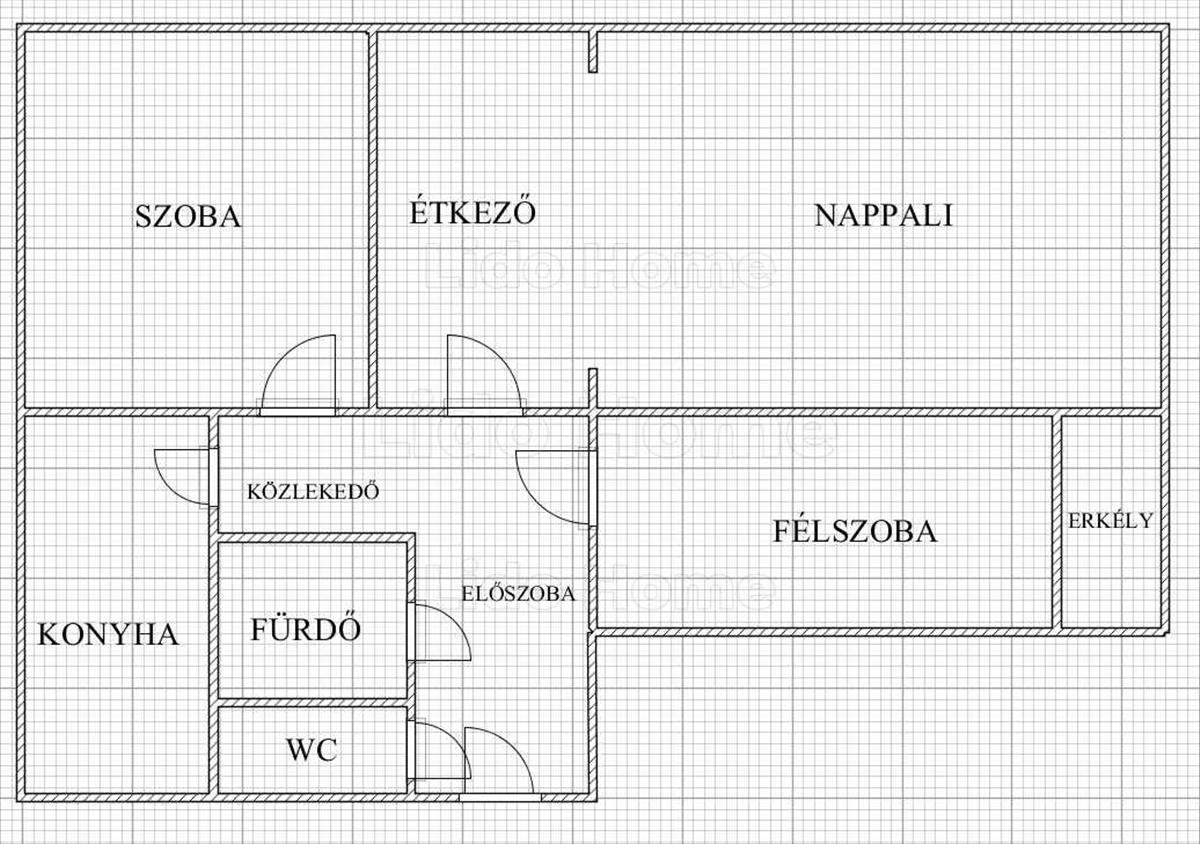 -Kettő egész és egy félszoba, valamint egy konyha, egy fürdőszoba és külön wc, továbbá egy beépített erkély kapott helyet
