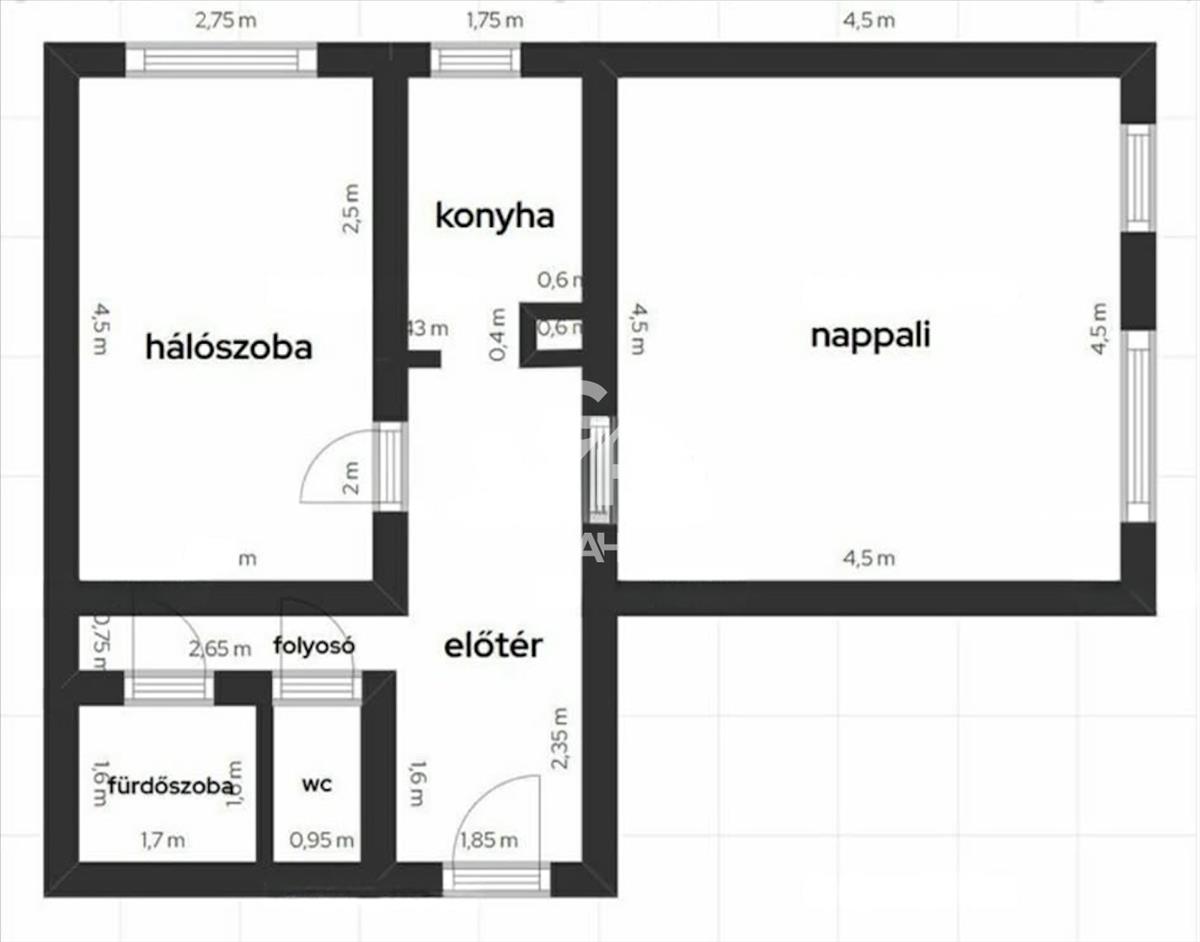 – 2 egész szobából, 1 előszobából, 1 konyhából, 1 fürdőszobából és 1 Wc-ből áll.
