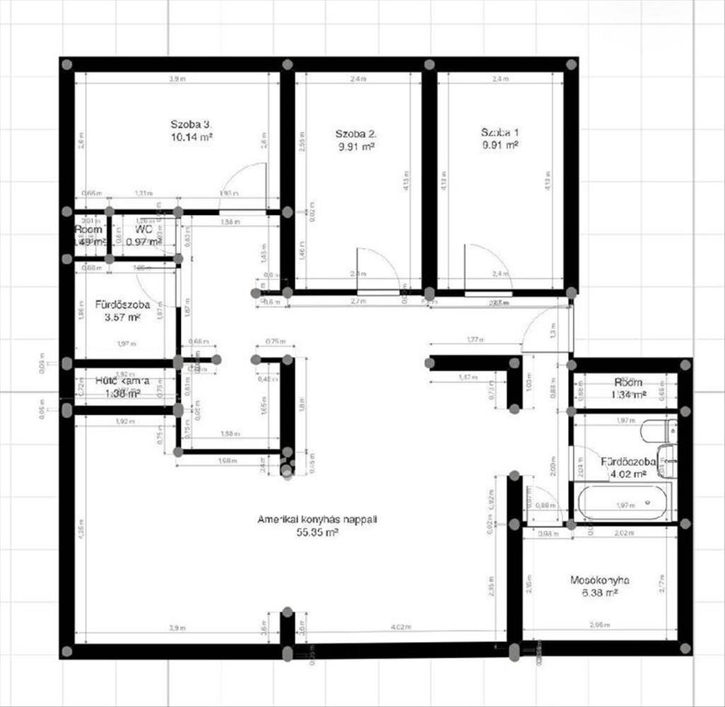 A lakás központi tere egy világos, 35 m2-es amerikai konyhás nappali, amely ideális helyszíne lehet a családi együttléteknek vagy baráti összejöveteleknek. Az ingatlan további három külön nyíló félszobával rendelkezik, így kényelmesen kialakítható több hálószoba, dolgozószoba vagy gyerekszoba is.