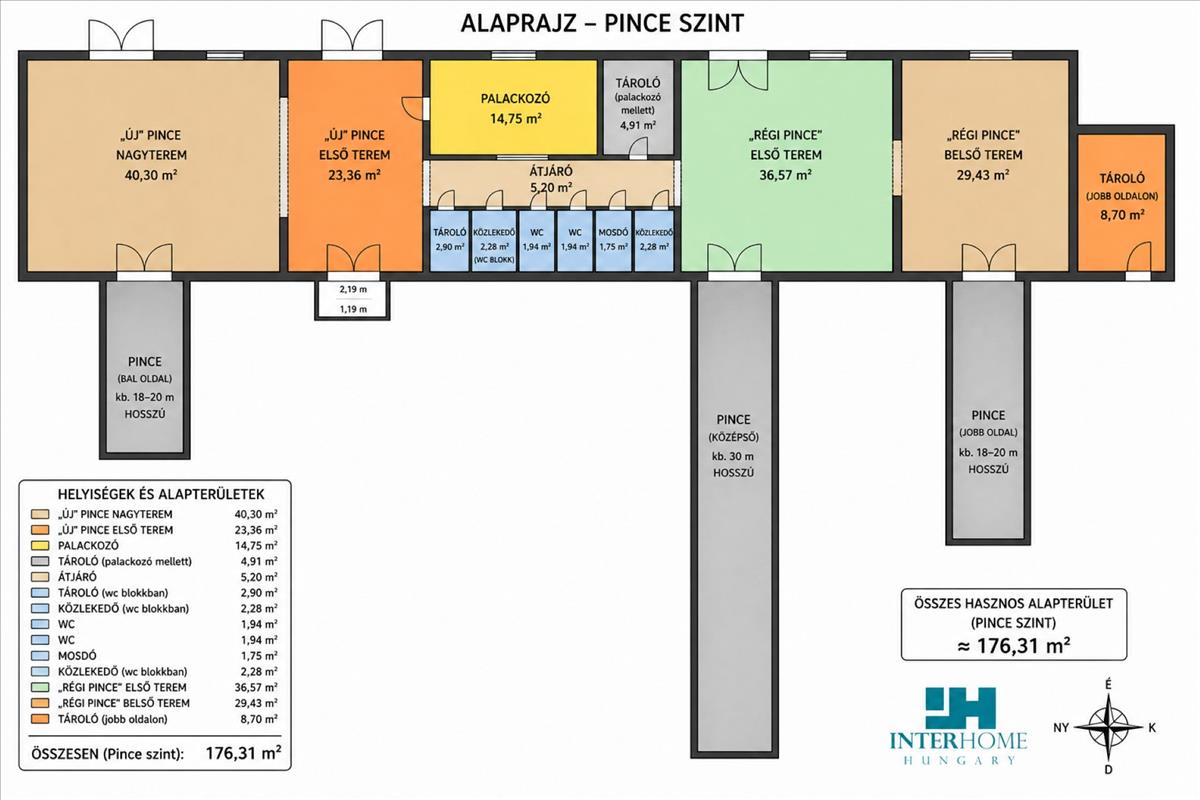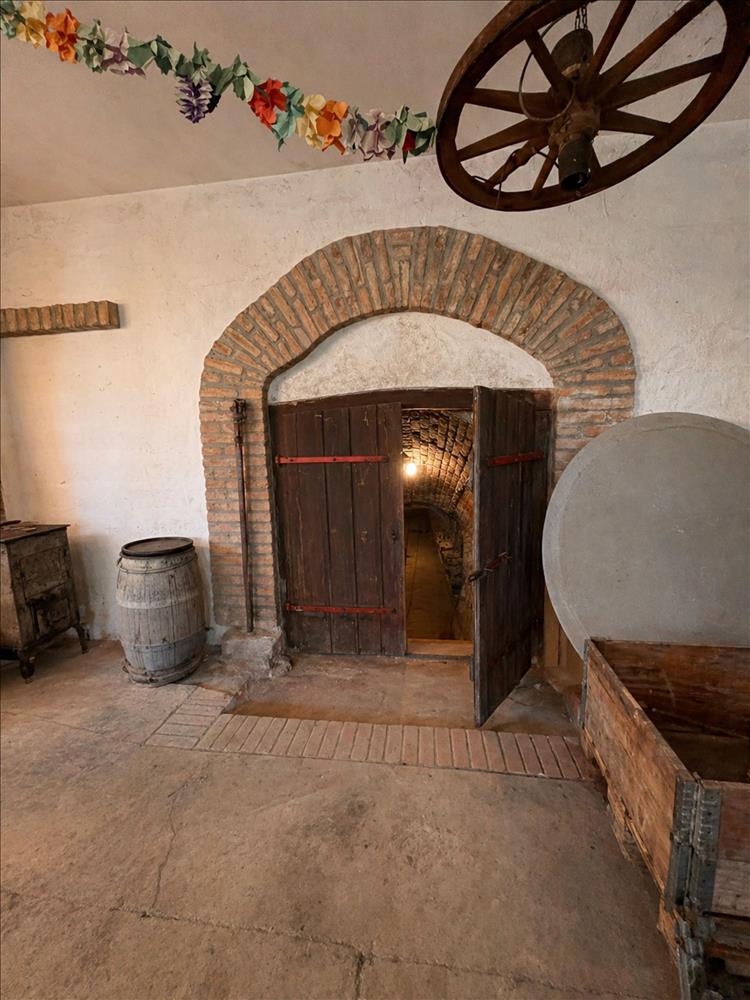 Az épület mellett található a későbbi, 100 m2- es, téglából készült rész, amely már szerkezetében is a nagyobb volumenű hasznosítást támogatja. Itt a földszinten két nagy méretű terem áll rendelkezésre, valamint két lenyűgöző, téglaboltíves pinceág, amelyek közül az egyik jelenleg beszakadt állapotú, de kitisztítva és helyreállítva különleges értéket képviselhet. Az ingatlan különlegessége, hogy a két épületrész belül, egy folyosón keresztül is összeköttetésben áll, így egységes, jól átlátható és könnyen használható teret alkotnak, ami kiválóan alkalmas például borkóstolók vagy tematikus rendezvények lebonyolítására. a helyiségek között megtalálható még egy feldolgozó szoba, két mellékhelyiség és egy tároló is. a tetőtér beépítése már elkezdődött, összesen mintegy 110 m²-en kínál további bővítési lehetőséget, amely kiváló alap lehet szobák vagy apartmanok kialakításához.