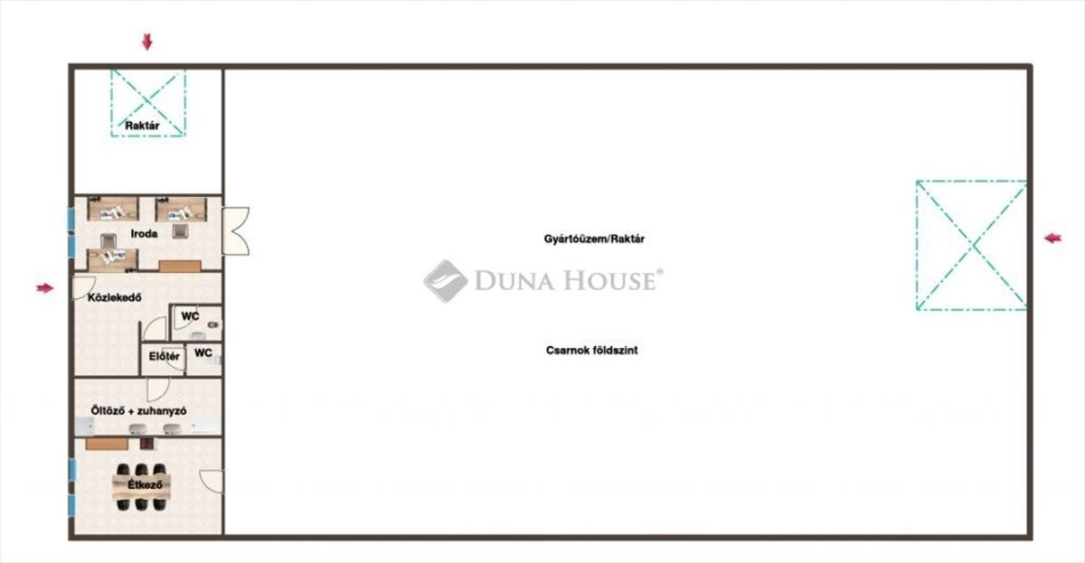 Az épületbe 3 bejáraton juthatunk be. a csarnok 5 m széles × 4, 5 m magas kapun át közelíthető meg, amely lehetővé teszi a tehergépjárművek zavartalan ki- és bejárását. a raktárrésznek külön 3 m széles × 2, 12 m magas kapuja van. a személybejáró az iroda és szociális blokk felől biztosított.