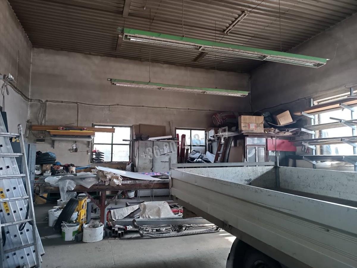 A terület, teljes egésze, stabil kerítéssel körbe van kerítve, Nagykapuval ellátott, Kamionok bejárását is tudja biztosítani. Közművek közül, villany, és Ipari árammal rendelkezik. Egyéb közmű nincs, igény esetén az utcáról bevezethető. a területen található, két épület egymás mellé lett építve, mely lehet raktár, műhely, Telephely, Gyártó részleg, illetve több igényt is ki tud elégíteni. a kisebbik rész, ami közel 50m2-es lemezből épült, szerkezetileg kiváló. a másik mely közvetlen hozzá van építve, kettő között átjárhatóság biztosított, stabil falazatú, lemezemeléssel. Több méter magas, így akár autószerelő műhelynek, is tökéletes lehet, vagy a kamionok beállását is tudja biztosítani. Aljzata betonozott. Egy kis étkező is kialakításra került.