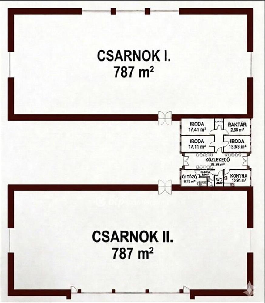 -Csarnok: Két nagyméretű, egyenként 786, 89 m2-es, tágas csarnokrész biztosítja a munkateret.