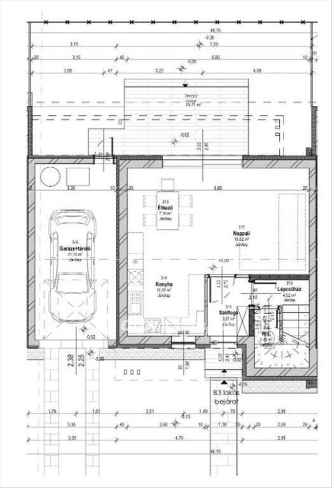 -A b3 lakás egyik legnagyobb előnye a saját garázs, amely kényelmes és biztonságos parkolást biztosít.