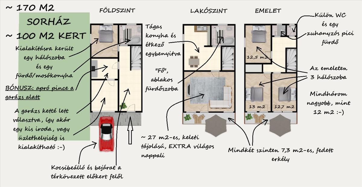 Eladóvá vált Balatonfüred frekventált részén, a Polgármesteri Hivatal, Templomok, Orvosi rendelő és a Vásárcsarnok közelében, egy 3 szintes, összesen 170 m² alapterületű sorházi lakás, pici, térkövezett beállóval és jól kihasználható oldalsó kerttel.