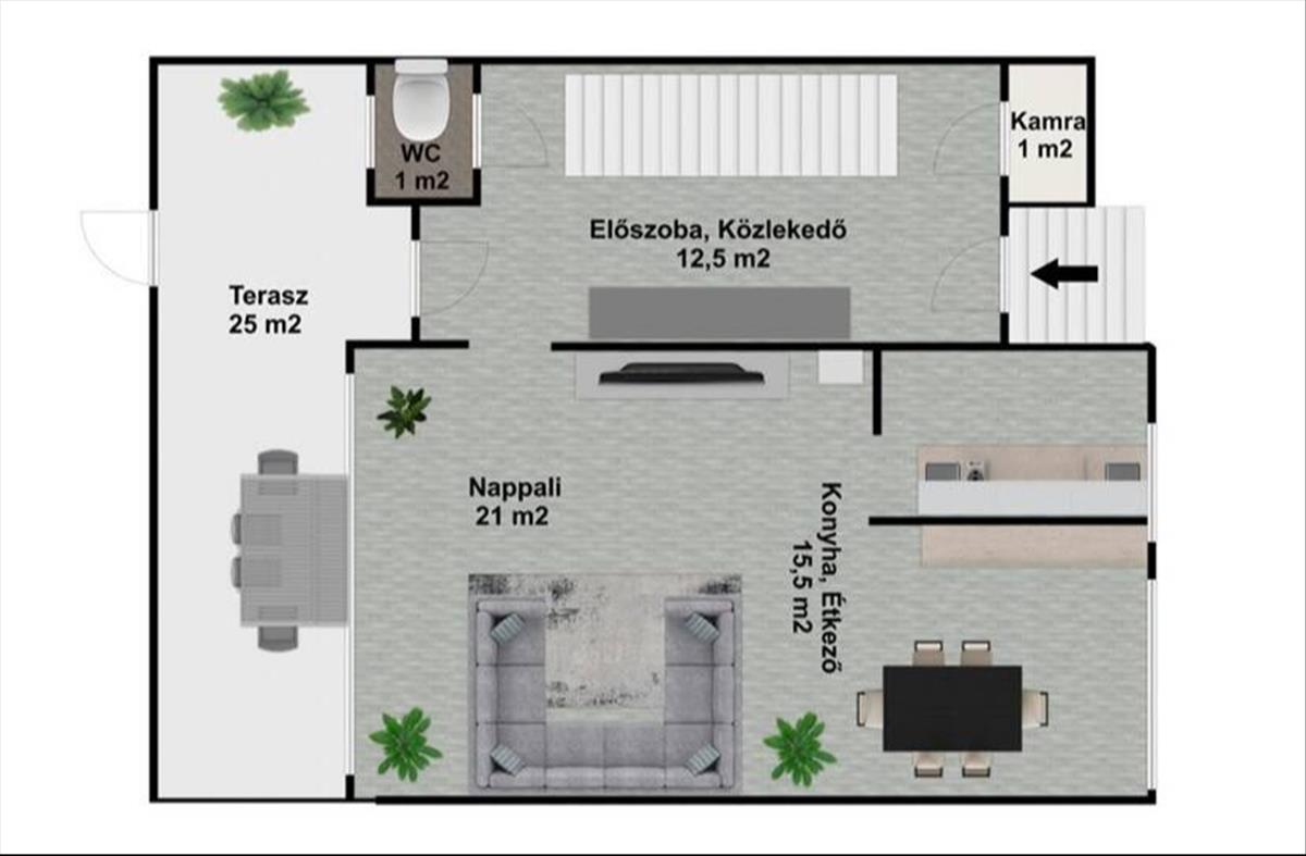 - lakótér: kb. 101 m2 + 25 m2 terasz