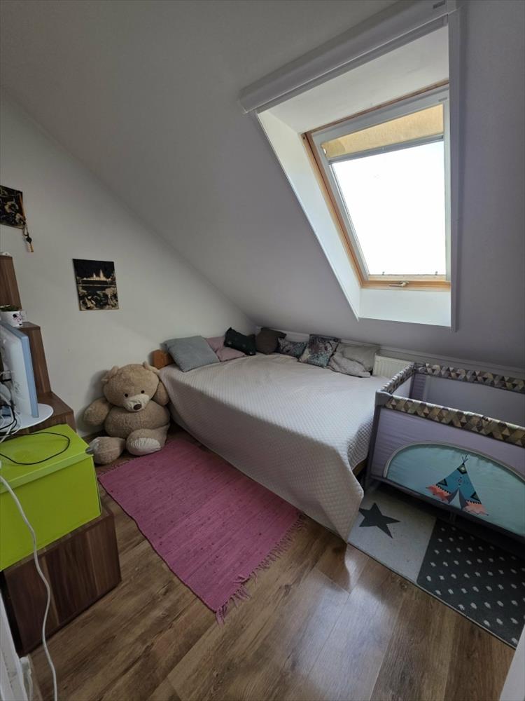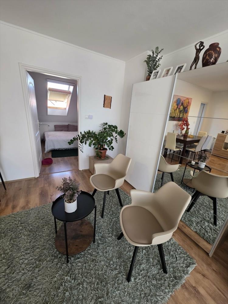 Pécstől mindössze 10 percre, Birján kedvelt lakóparkjában eladó egy bruttó 70 m2 két hálószobás, első emeleti lakás, amely tetőtérbeépítéssel kialakított, világos és tágas otthont kínál.Fűtését gázcirkó biztosítja, míg a hűtésről hűtő-fűtő klíma gondoskodik, továbbá egy 6 m2-es terasz is kellemes kikapcsolódási lehetőséget nyújt. a társasház közös használatú kertje részben térkövezett, itt található a lakáshoz tartozó két gépkocsibeálló is.