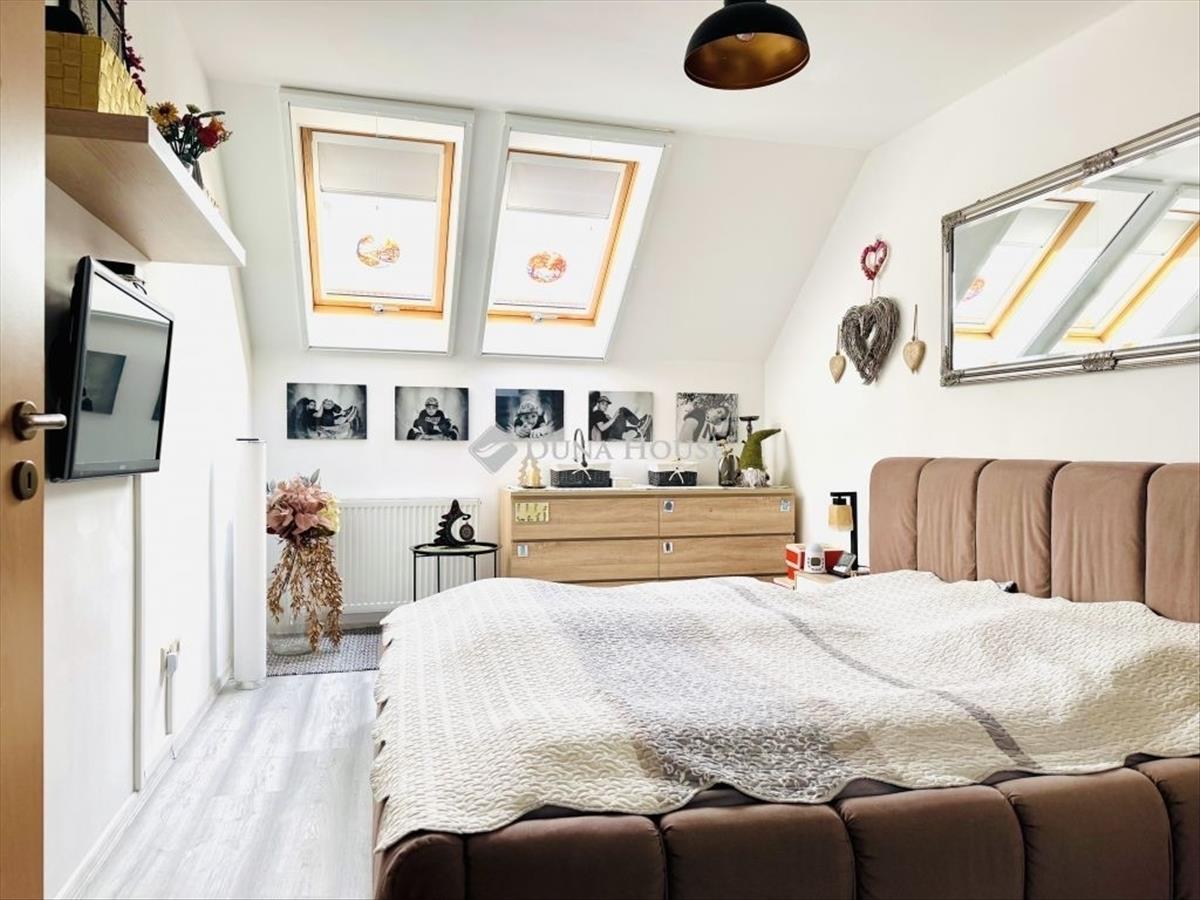 Pécstől mindössze 10 km-re, Bogádon eladó egy igényesen felújított, belső kétszintes sorházi lakás. Az ingatlan amerikai konyhás nappalival, három hálószobával, fürdőszobával és külön WC-vel rendelkezik. Főbb jellemzők:A lakás 4 évvel ezelőtt teljeskörű felújításon esett át, mely kiterjedt:a nyílászárók cseréjére (redőnnyel és szúnyoghálóval felszerelve), új kondenzációs gázkazán beépítésére, teljes víz- és villamoshálózat korszerűsítésére. a tető 20 cm-es szigetelést kapott. a rezsi rendkívül kedvező: a téli fűtés átalány mindössze 7 000 Ft. a lakáshoz kb. 50 M² saját kertkapcsolat tartozik. a parkolás saját kocsibeállón megoldott. a ház mellett található még egy praktikus fa melléképület, amely tárolóként vagy egyéb célra kiválóan használható. a környék csendes, rendezett, nagyon jó lakóközösséggel. a sorházak előtt egy vadiúj játszótér található, amely egy éve épült. Bogád infrastruktúrája kiváló: a közelben iskola, óvoda és kisbolt is rendelkezésre áll