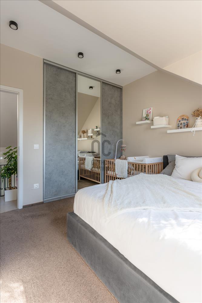 A nagyobb hálószoba elektromos redőnnyel és egy tágas, beépített gardróbbal biztosít kényelmet.