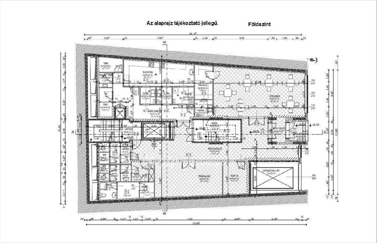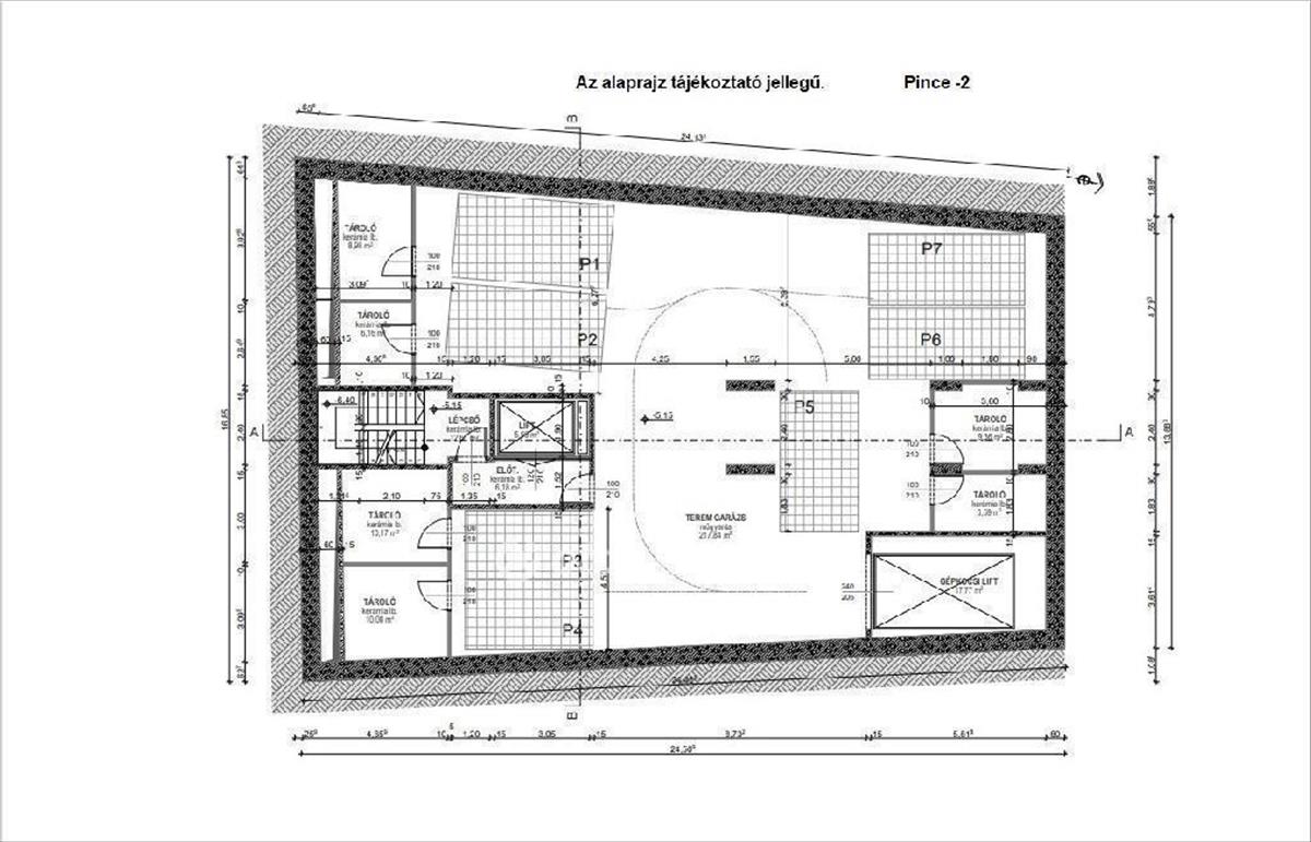Az épület zártsorúan helyezkedik el a telken, a pinceszinten és a földszinten teljesen beépült az építési terület, az emeleti szinteken két kis belső udvar lett kialakítva. a tervezett épület 3 pinceszintes + földszint + 7 emeletes, magastetős kialakítású. Az épület építménymagassága 24, 414 m. a 3 db pinceszint megközelítését gépkocsival, autólifttel tervezték, a födémáttöréseit kihagyták és vasbeton körítő falát megépítették. a -3 pinceszinten a teremgarázs 7 db gépkocsi tárolására alkalmas.
