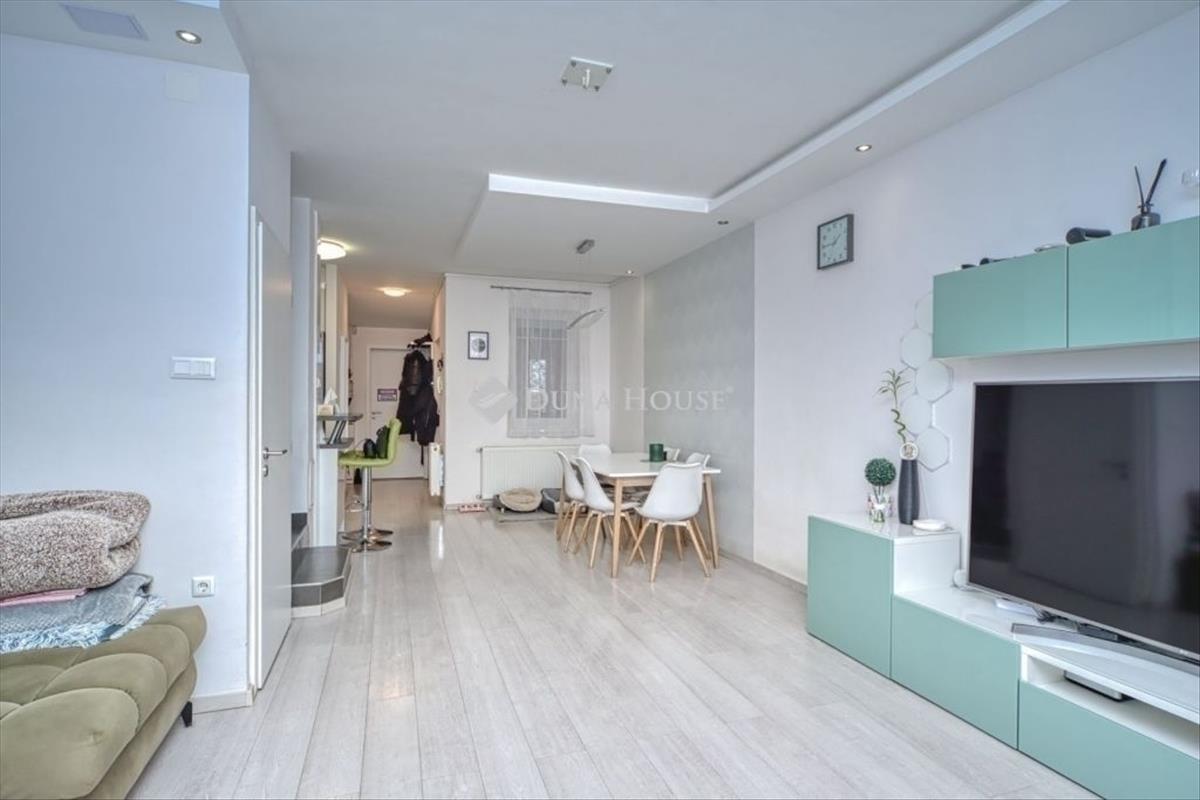 Családbarát környezetben, mégis mindenhez közel! Első ház vásárlók figyelem. Budapest x. kerületének Óhegy részén eladó egy 2009-es építésű, 190 nm -es telken álló, 111 nm lakóterületű, négy szobás, családi otthon! Az eladó ingatlan 6 lakásos sorház egyik középső lakása. Az ingatlan belső két szintes, önálló helyrajzi számmal és külön mérőórákkal rendelkezik. Az autóbeállás több autó számára lehetséges, az előkertben, a hátsó kert a családi élet színtere lehet, tavasztól-őszig. a teljesség igénye nélkül az alábbiak jellemzik az ingatlant:- a fűtés ellátást: Sanier Duval Themafast f28 típusú cirkóval történik, - az épület szigetelt, a szigetelés: 10 cm, - összesen 4 klíma biztosítja a kellemes hőérzetet, - 3x32 amper hálózatbővítés, - részleges tetőfelújítás, - alumínium redőnyök az ablakokon, a teraszajtón elektromos redőny, - elektromos kertkapu, - elektromos autó töltő pont + fedett autóbeálló kialakítás + kerítésen kívüli autóbeálló, - a tetőtérben a párnafák között gyapot szigetelés van, - új beltéri ajtók, álmennyezet, led világítás. a földszinti rész 65 nm , elosztását tekintve, amerikai konyha+nappali várja új lakóit, a garázsból egy hálószoba került kialakításra, ezen a szinten még zuhanyzó és wc, és előtér áll rendelkezésre. a nappaliból közvetlen kijárat nyílik a kertbe, ami még kényelmesebbé és élhetőbbé teszi a mindennapokat, valamint teraszkapcsolatos. Az emeleti szintre kényelmes lépcsőn jutunk fel, ez a szint 35 nm , az előtérből kádas fürdőszoba + wc, és két hálószoba nyílik, az egyik erkély kapcsolatos. a vételárrészét képezi:- a beépített gépesített konyhabútor, a tűzhellyel, a sütővel, a hűtővel, a mosogatógéppel és a mosógéppel együtt, - a 4 db klíma, - az ingatlan teljes bútorzata, kivéve a nappaliban lévő szekrény tv, és ülőgarnitúra, - a kertben az akril jakuzzi. a hátsó kert szinte gondozás mentes, a műfű 2025- ben lett kialakítva, kerti csap rendelkezésre áll. Kiemelném a családi otthon fűtés számlája havi 12, 000, Ft. FONTOS: a garázsból kialakított földszinti hálószoba tökéletesen alkalmas üzlethelyiségnek is. Környék:Közelben néhány percre az Óhegy park, Sibrik Lidl, Interspar, kutyasétáltatási lehetőségek, óvoda, általános iskola, gimnázium, buszmegállók (Örs, Köki felé). Nem elegendő készpénze? Áthidalna? Hitelcentrumunk teljes körű és díjmentes hitel ügyintézéssel áll az Önök szolgálatára. Amennyiben további információval a segítségére lehetek, hívjon bizalommal! FIX 3% lakáshitelre megvehető