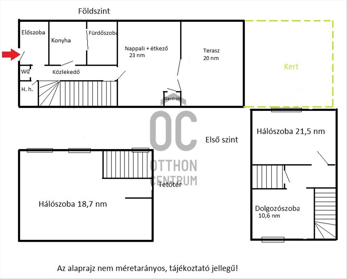 - földszint, teljes értékű emelet + beépített tetőtér