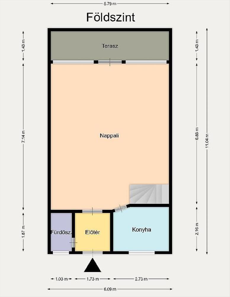 A földszinti közlekedőből közelíthetjük meg a fürdőszobát, a tágas és ablakos konyhát, illetve az impozáns nappalit, ahonnan a 11 nm-es napos teraszra, majd lépcsőn lesétálva privát kertbe léphetünk ki.