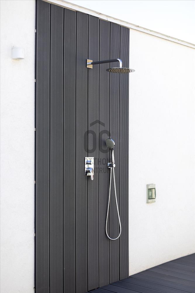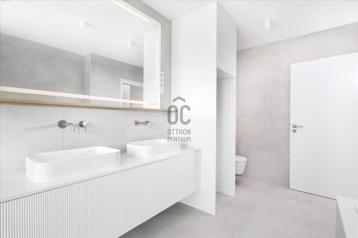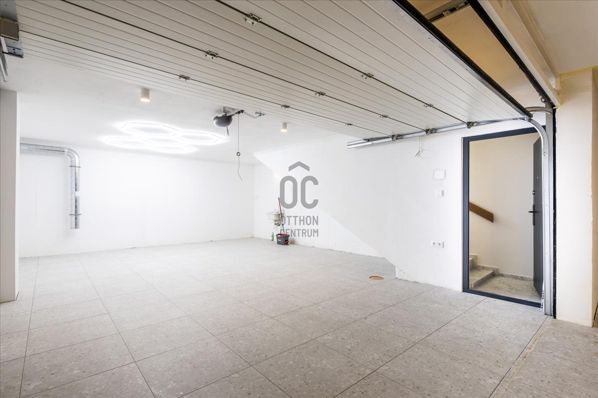 A használhatóságot tovább erősíti, hogy a garázs szekcionált, mérete lehetővé teszi tároló funkció kialakítását is, miközben a garázsban, a teraszon és a tetőteraszon is rendelkezésre áll vízkiállás. a kertben automata öntözőrendszer működik, a biztonsági rendszer kialakításához pedig kamera- és riasztó előkészítés is rendelkezésre áll.