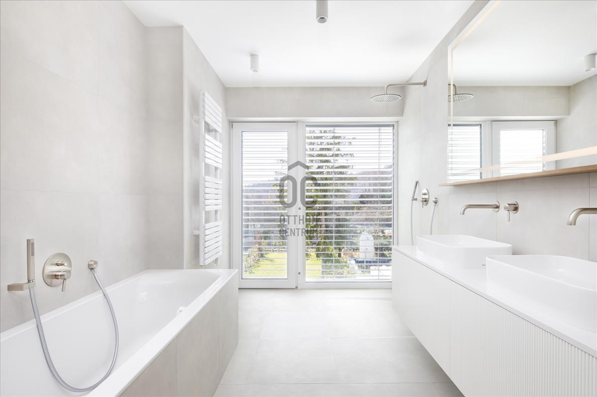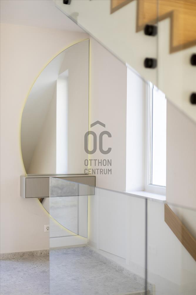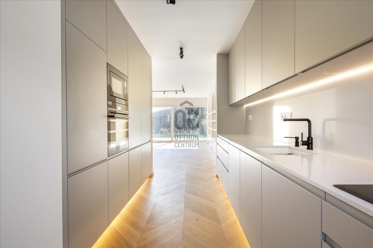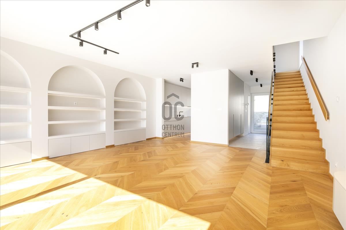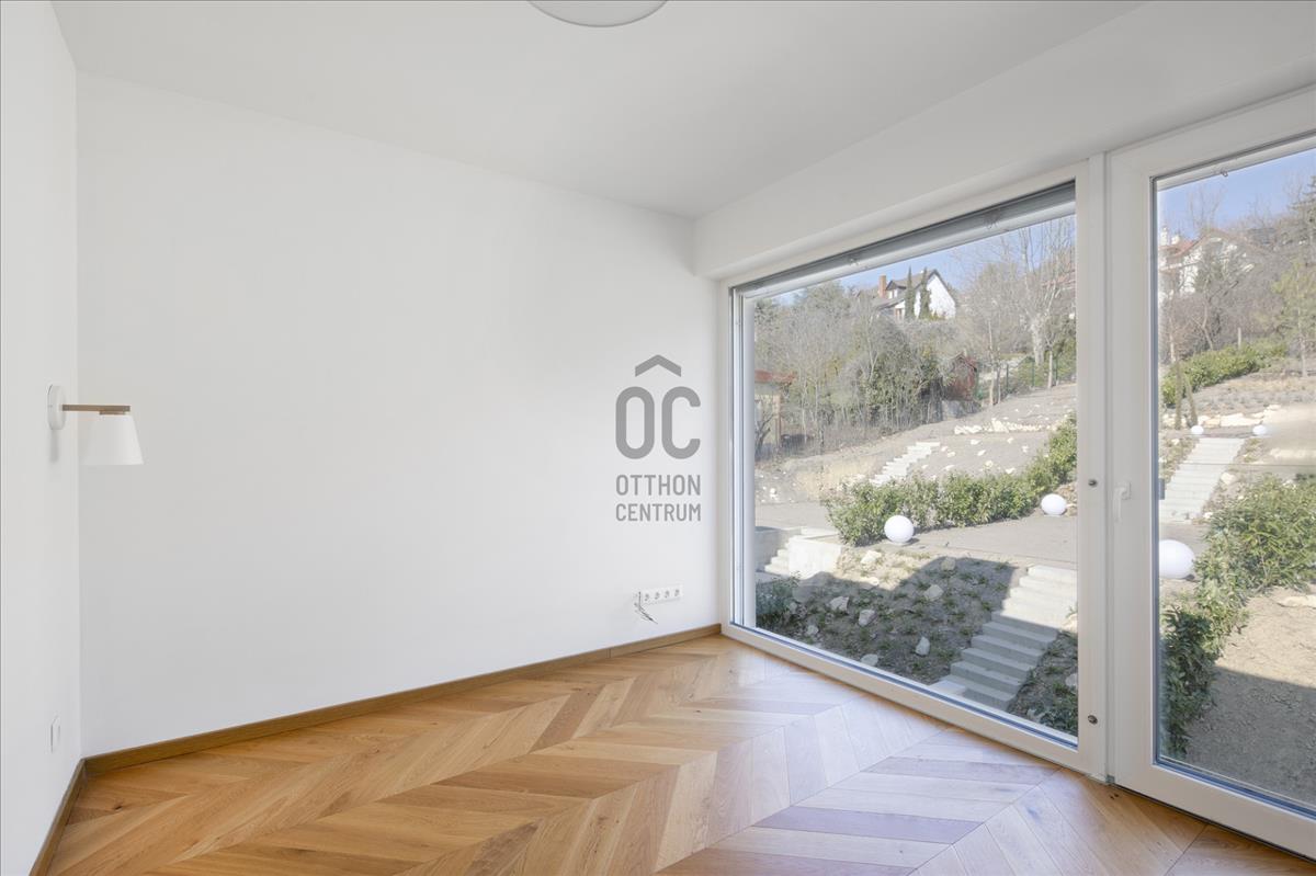 Budapest XII. kerületében, Budaörsi-hegy északkeleti peremén az Irhás árokban található ez a 143 m²-es, háromszintes sorházi otthon, amelyhez kb. 600 M² saját kert, 18 m² terasz, 50 m² erkély/tetőteraszos kültéri kapcsolatok, valamint fedett beállók és garázshelyek tartoznak. a déli tájolású, modern szemlélettel kialakított ingatlan hőszivattyús mennyezethűtéssel-fűtéssel és padlófűtéssel készült.