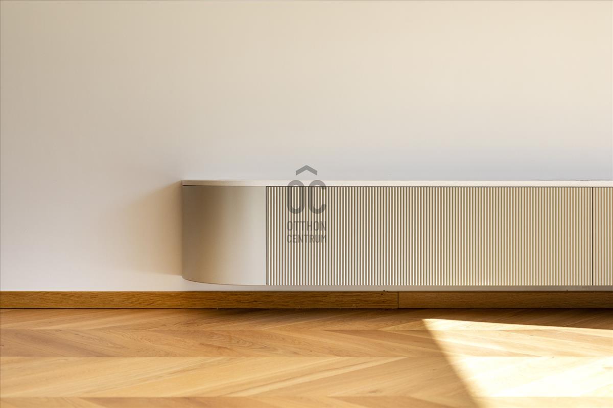 Belépve a tér hangulata azonnal érzékelhető. Nem túlzó, nem hivalkodó, inkább egyfajta nyugodt, rendezett elegancia jelenik meg, ahol minden a helyén van. Az arányok működnek, a terek jól értelmezhetők, és nem kell kompromisszumokat kötni a berendezhetőség vagy a használat során.