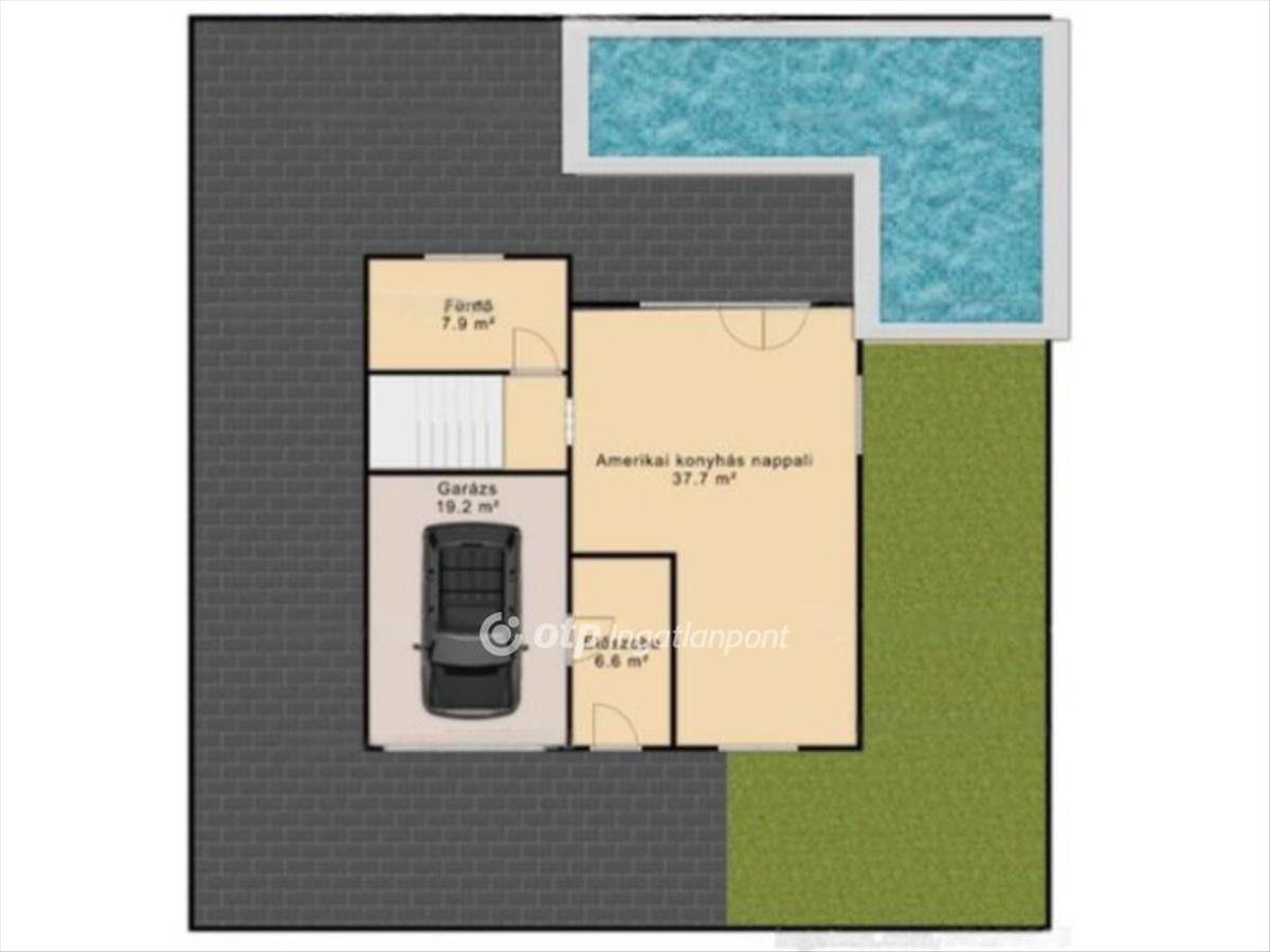 A kertben egyedileg kialakított medence, jakuzzi, bográcsozó és fatüzelésű kemence került kialakításra.