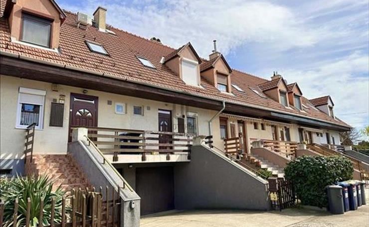 Az ingatlan a 90-es években épült, a felső két szinten összesen 80 m2 lakóterülettel rendelkezik, pinceszinten egy 41 nm-es zárt garázs + tárolóval. Ezen felül tartozik hozzá egy 30 nm zárt kertrész is, amit a nappaliból lehet megközelíteni, a garázs előtt pedig plusz egy autónyi beálló van még.