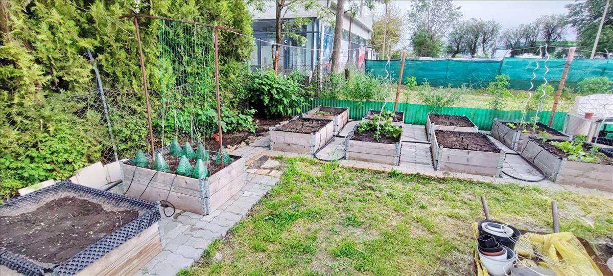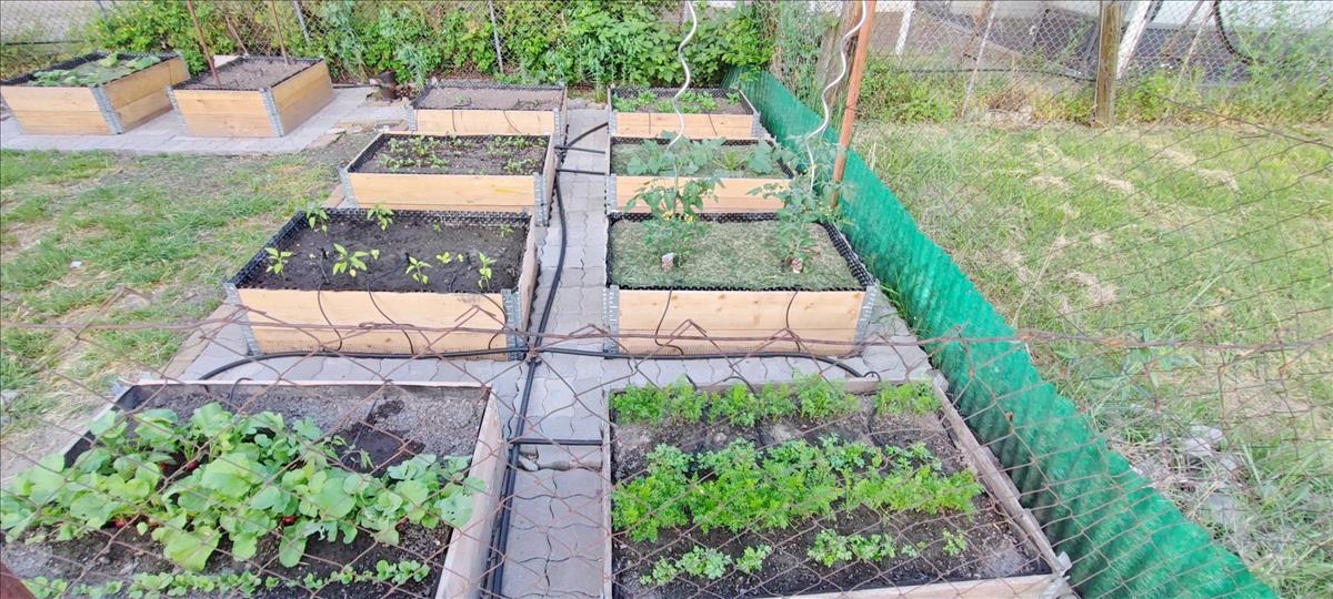 A kert több pontján kútról működő öntöző rendszer könnyíti a kert gondozását.
