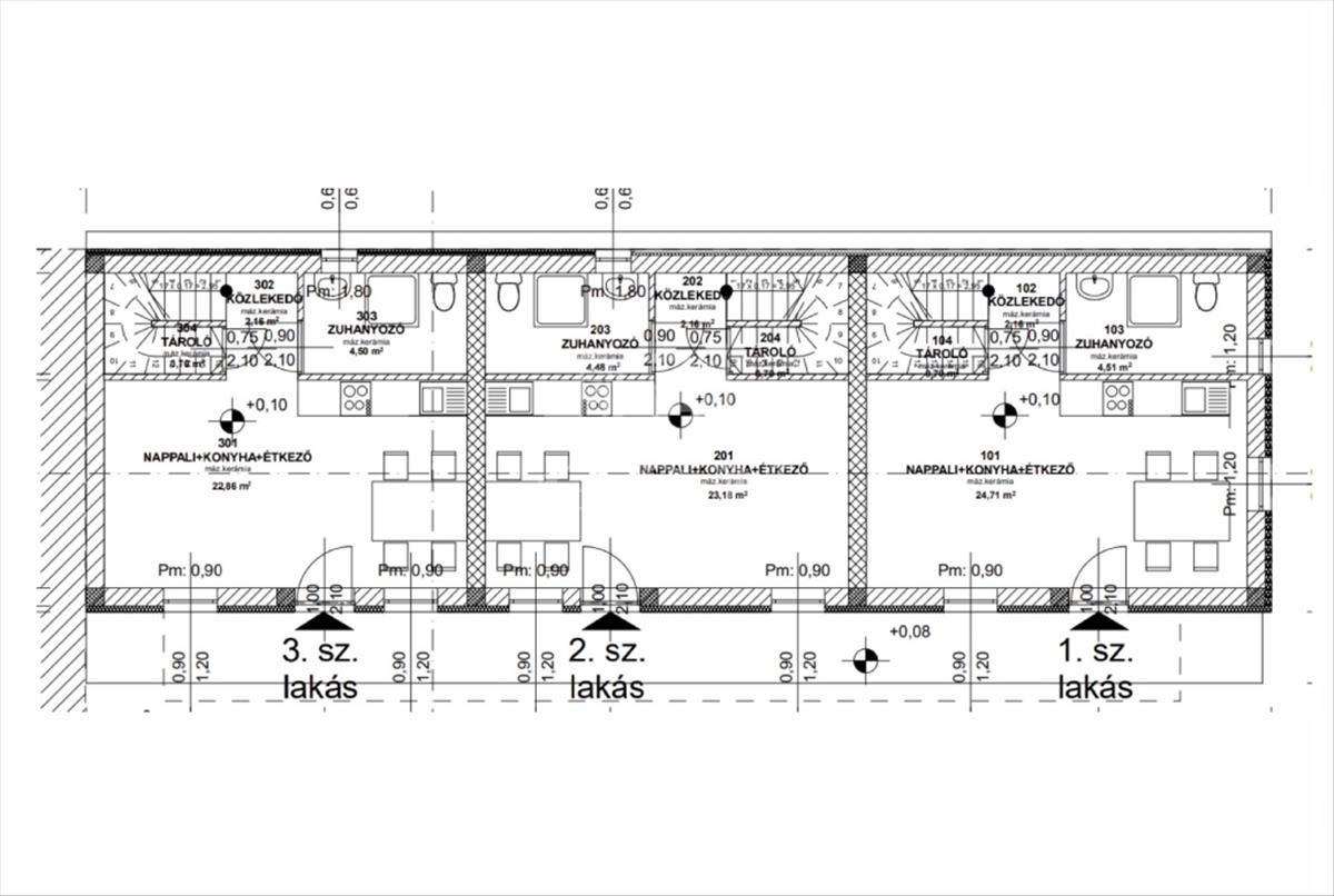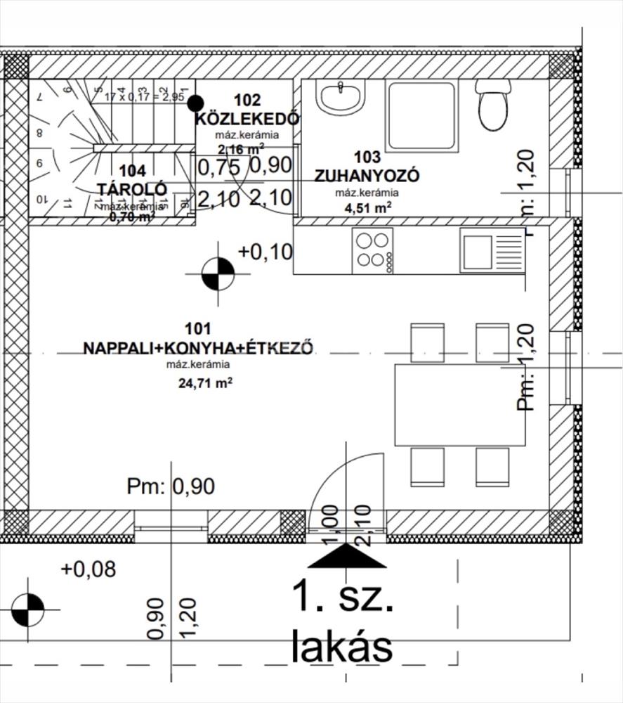 földszint: - nappali-konyha-étkező (24, 71 nm)