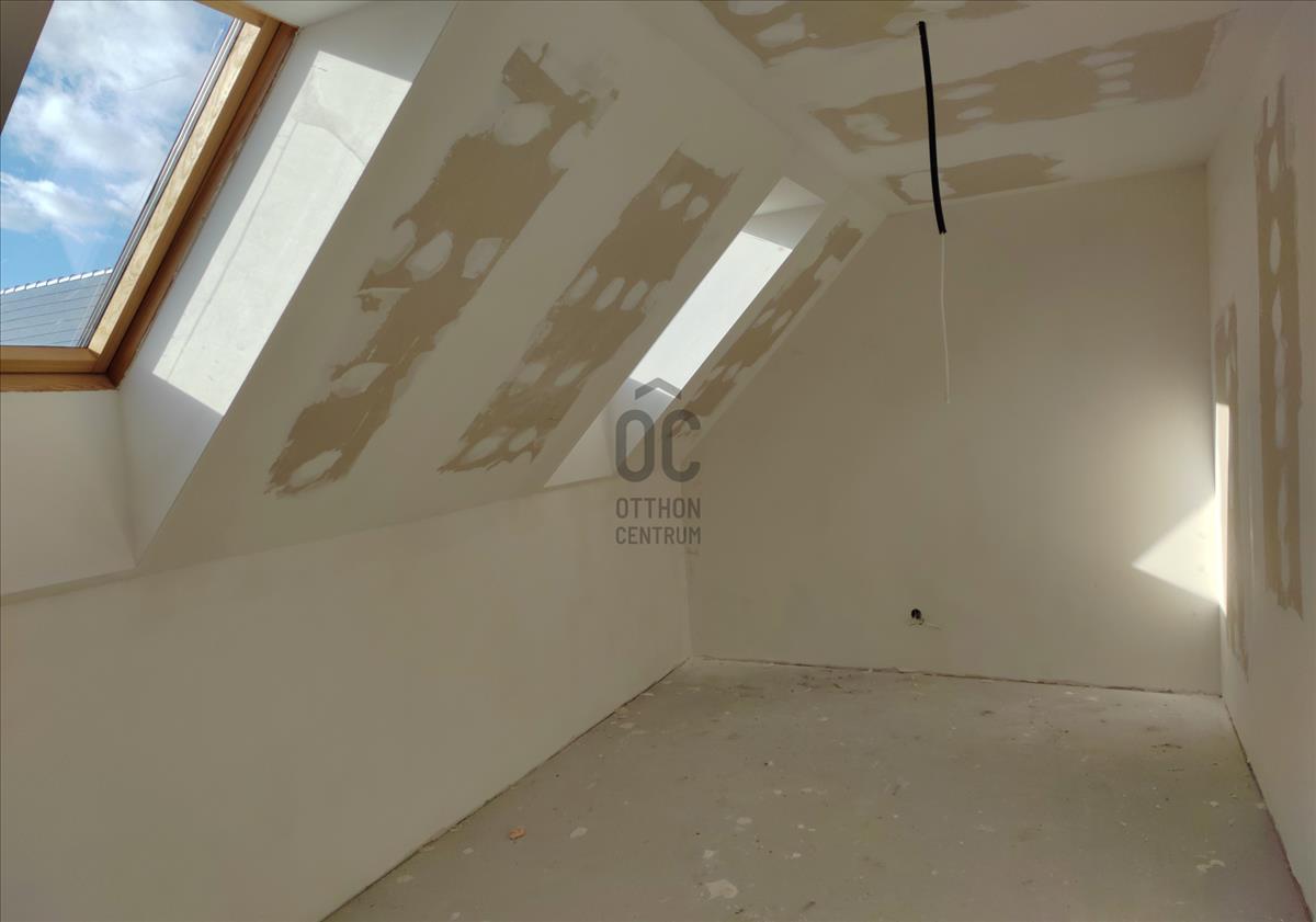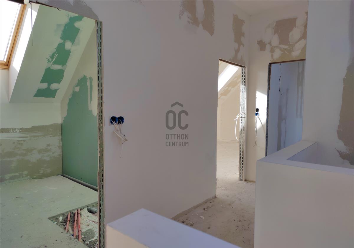 Az emeletre húzottkarú, gipszbeton szerkezetű lépcső vezet fel. Mindkét tetőtéri szobára 2-2 db tetőablakot terveztünk. a lakások