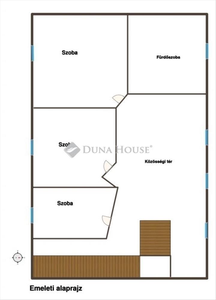 - helyiségei: földszint: egy tágas nappali, étkező- konyha, spájz, 1 szoba, 1 félszoba, közlekedő, fürdőszoba WC-vel, előszoba, mosókonyha, fedett terasz, lépcsőfeljáró