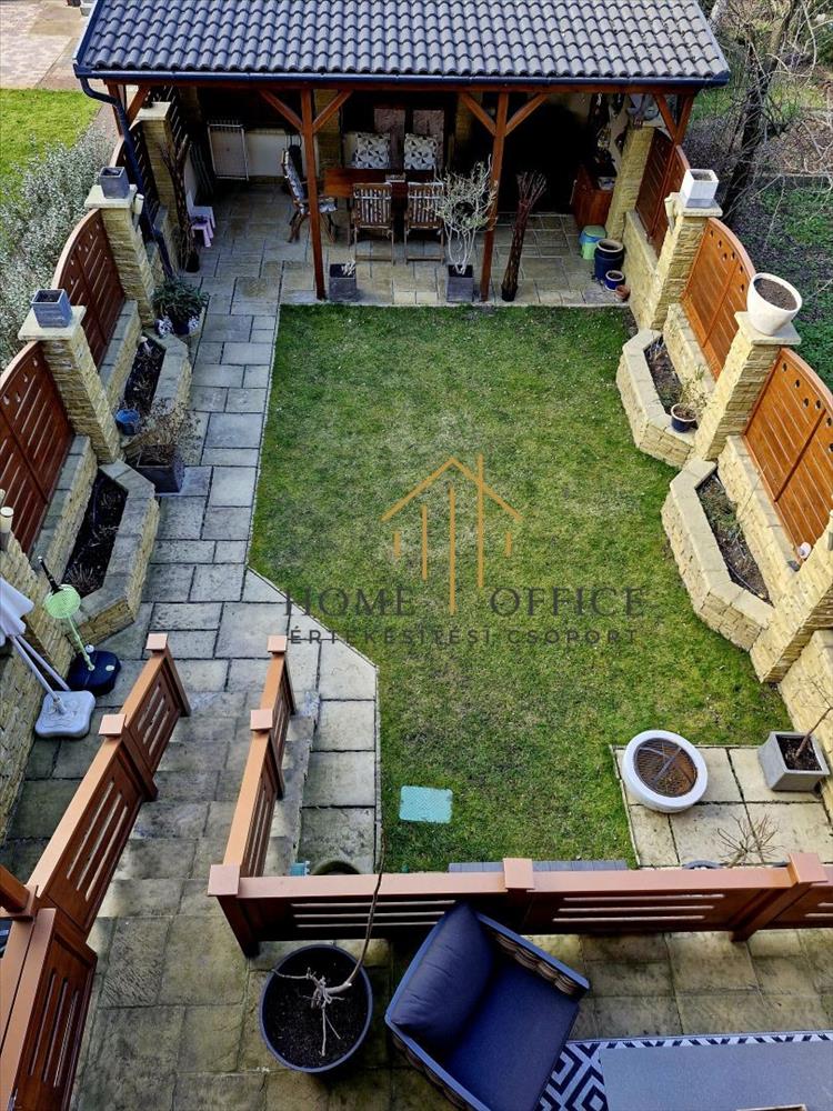 A 173 nm -es parkosított kert öntöző, -és csepegtetőrendszerrel ellátott.