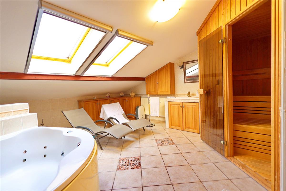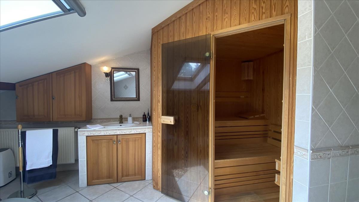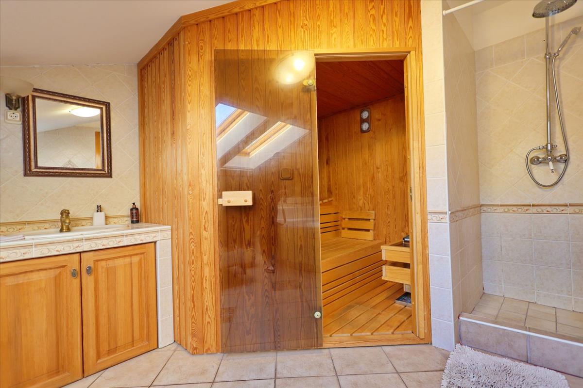 - Sauna room for a home wellness experience, with Finnish sauna and hydromassage tub