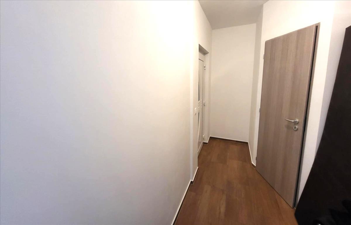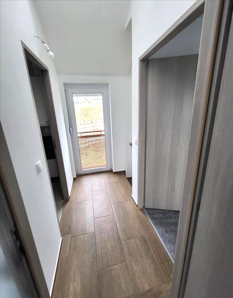 A földszinten egy kényelmes előszoba, egy modern bidet-wc kézmosóval, valamint a lépcső alatt kialakított praktikus tároló található, amely a 30 nm-es nappali–konyha–étkezőből nyílik. a nappali szilárd tüzelésre alkalmas kéménnyel rendelkezik, és innen néhány lépcsőfokon keresztül juthatunk ki a hátsó kertbe.