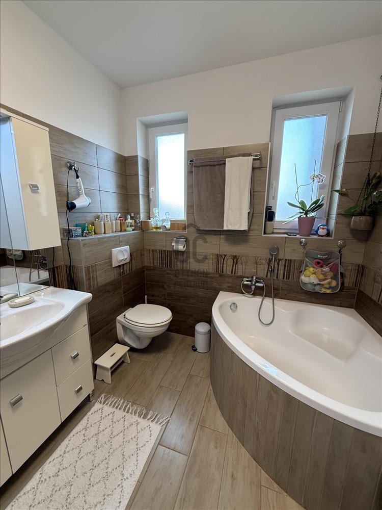 Két fürdőszoba, összesen három wc biztosítja, hogy a reggeli rohanás során sem kell várakoznia a lakóknak, mindenki számára elegendő az élettér.