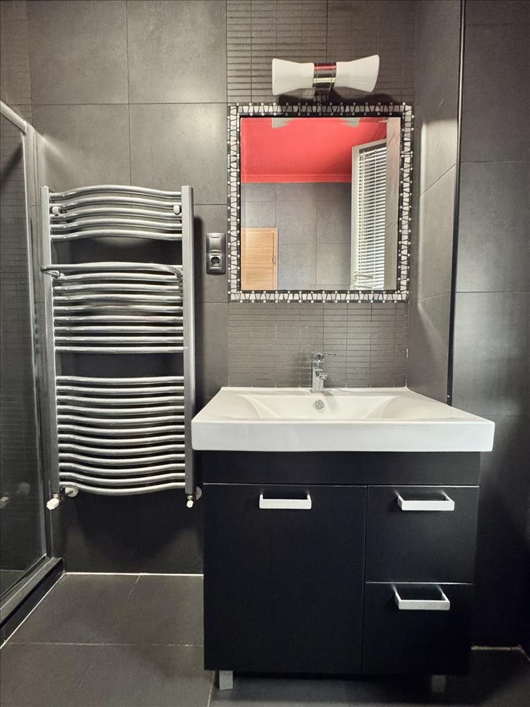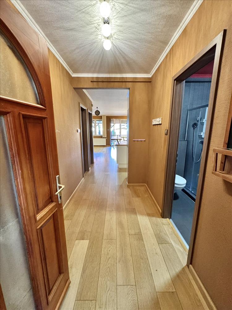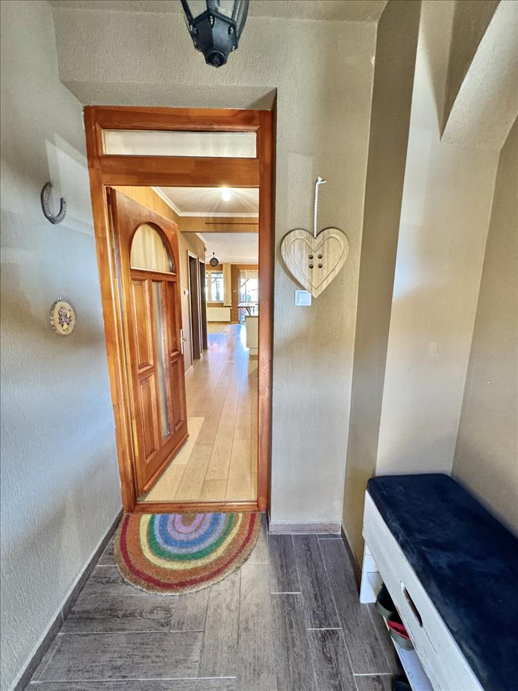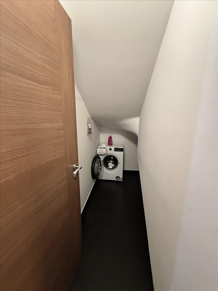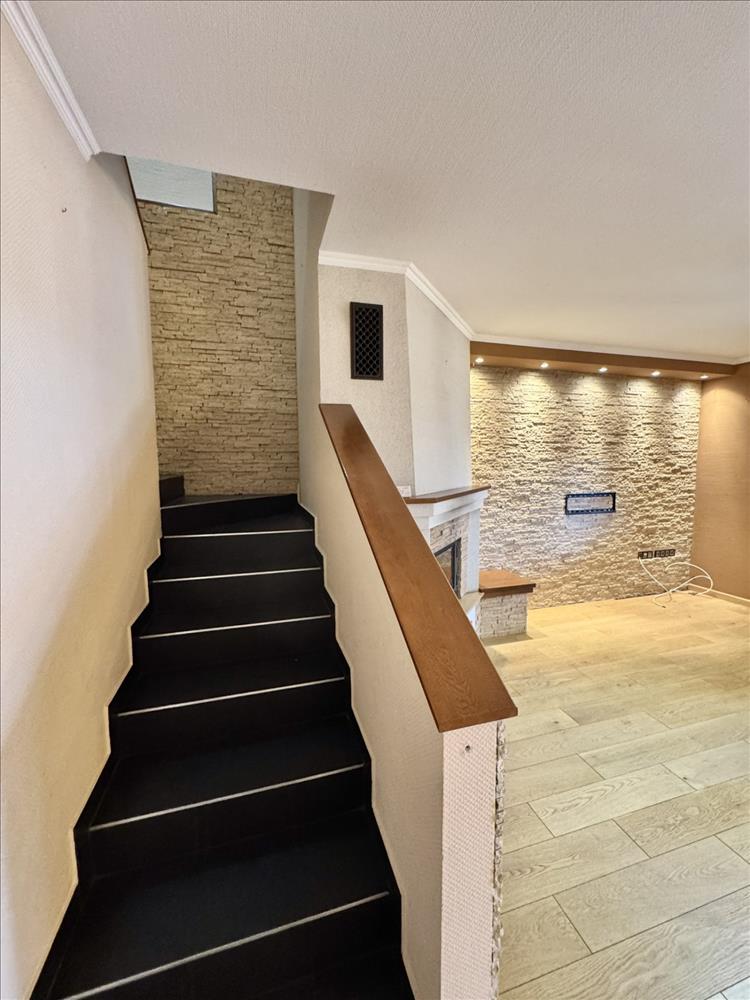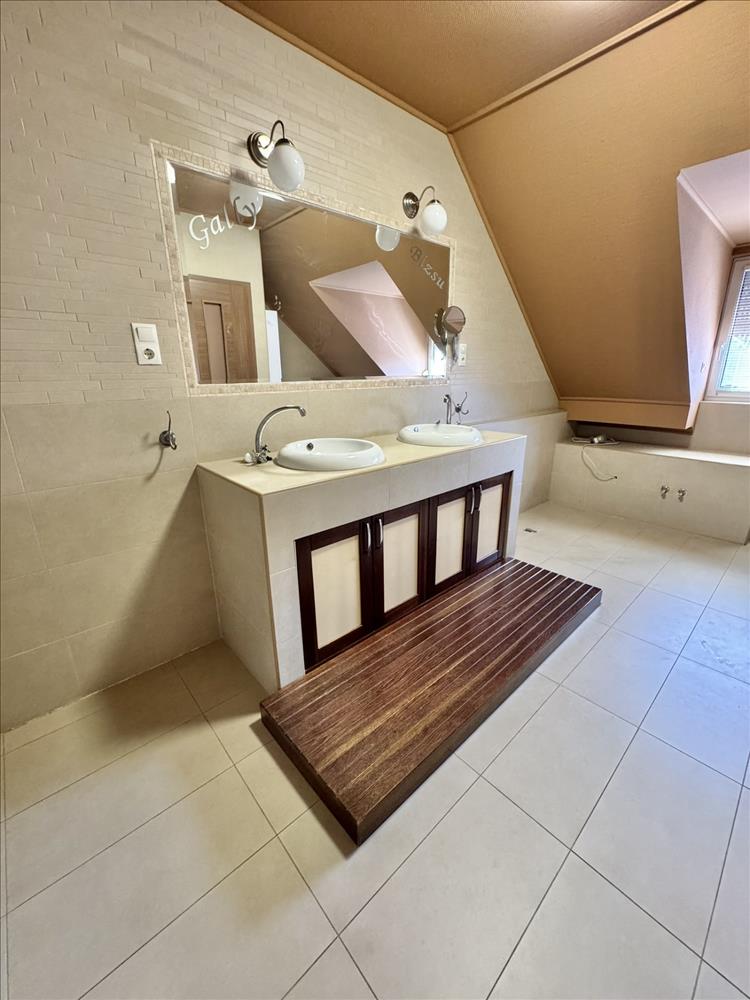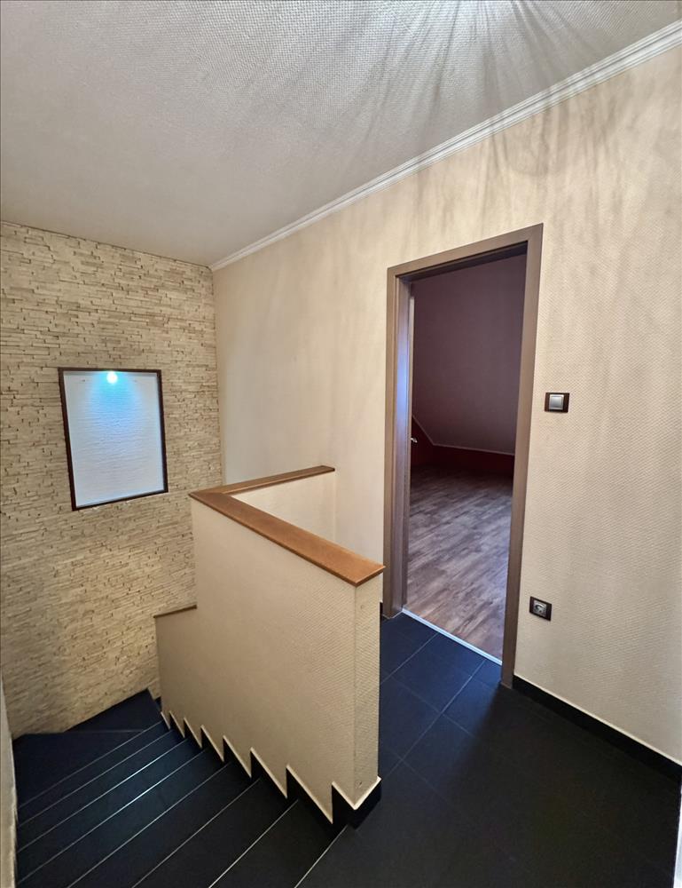Az alsó szinten található az előszoba, zuhanyzó wc-vel, 17, 7 nm -es hálószoba, kamra, am-konyha-nappali. a nappaliból egy üvegajtón keresztül léphetünk ki a 16 nm -es teraszra, amely a hátsó kertre nyílik. a felső szinten 2 hálószoba, gardrób, és egy nagy méretű fürdőszoba WC-vel (korábban hatalmas kád volt, illetve szauna bekábelezve) kapott helyet. a nappali – konyha – étkező összesen 41 nm . a padlástér ki lett alakítva, pakolható.