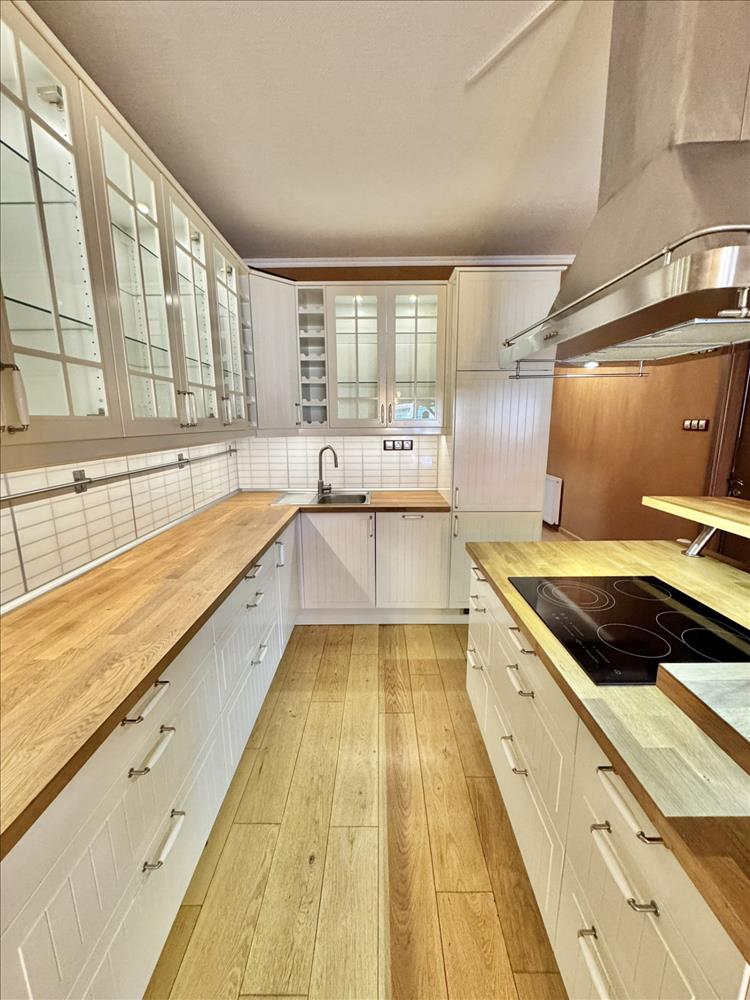 A nappali tölgyfa parkettàval burkolt és a saját kertre néz. a konyha felszereltsége: beépített sütő, -főzőlap, -mikró, -hűtő -mélyhűtő, -páraelszívó és -mosogatógép illetve konyha sziget.