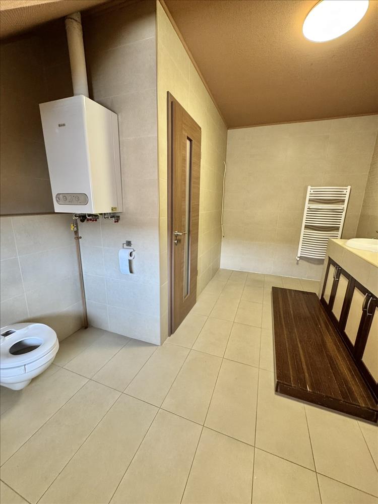 Kombi cirkó biztosítja a fűtést (padlófűtés a fürdőkben + törölköző szárító + radiátor + ) és a melegvíz ellátást.