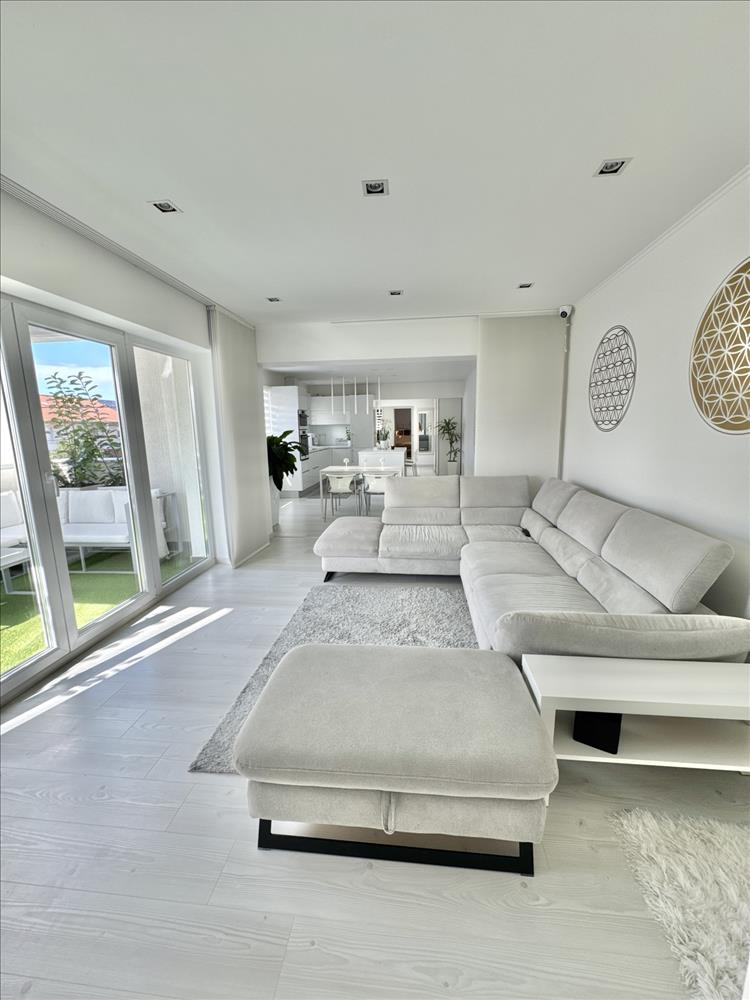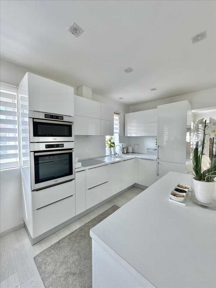 A nappali ragyogóan világos. Nagyon alacsony rezsi! Az elegáns konyha egyedileg tervezett, gépesített. Okos lámpák.