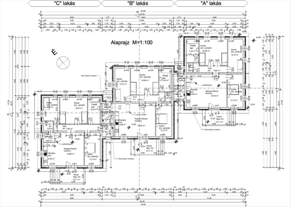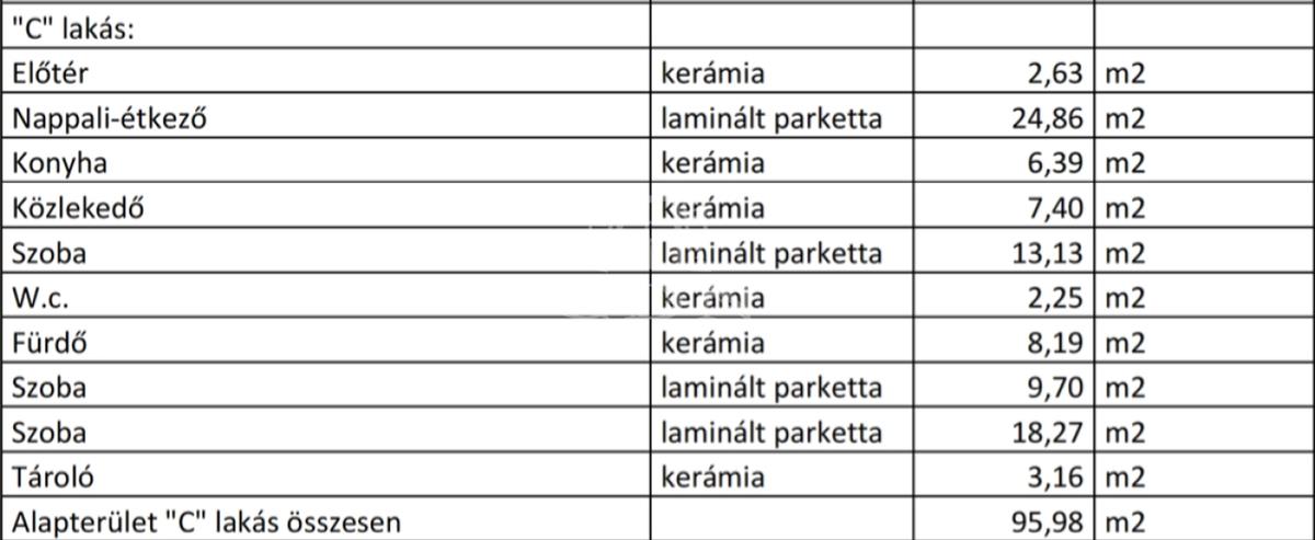 C-lakás 95, 98 nm 373 m2-es telekrésszel.