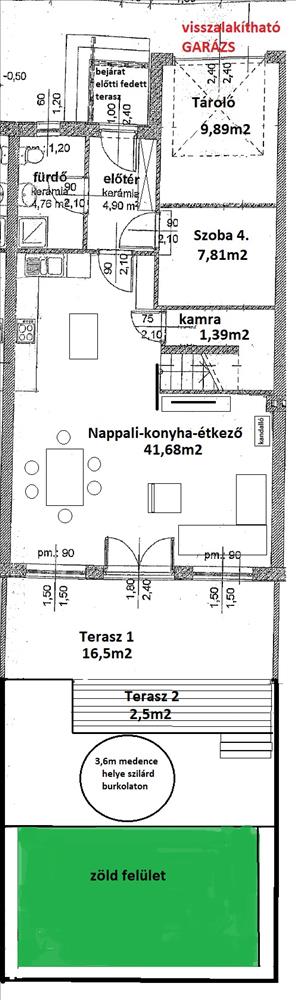 - elosztás: világos, tágas nappali + 4 hálószoba + 2 ablakos fürdőszoba + kamra + garázs.