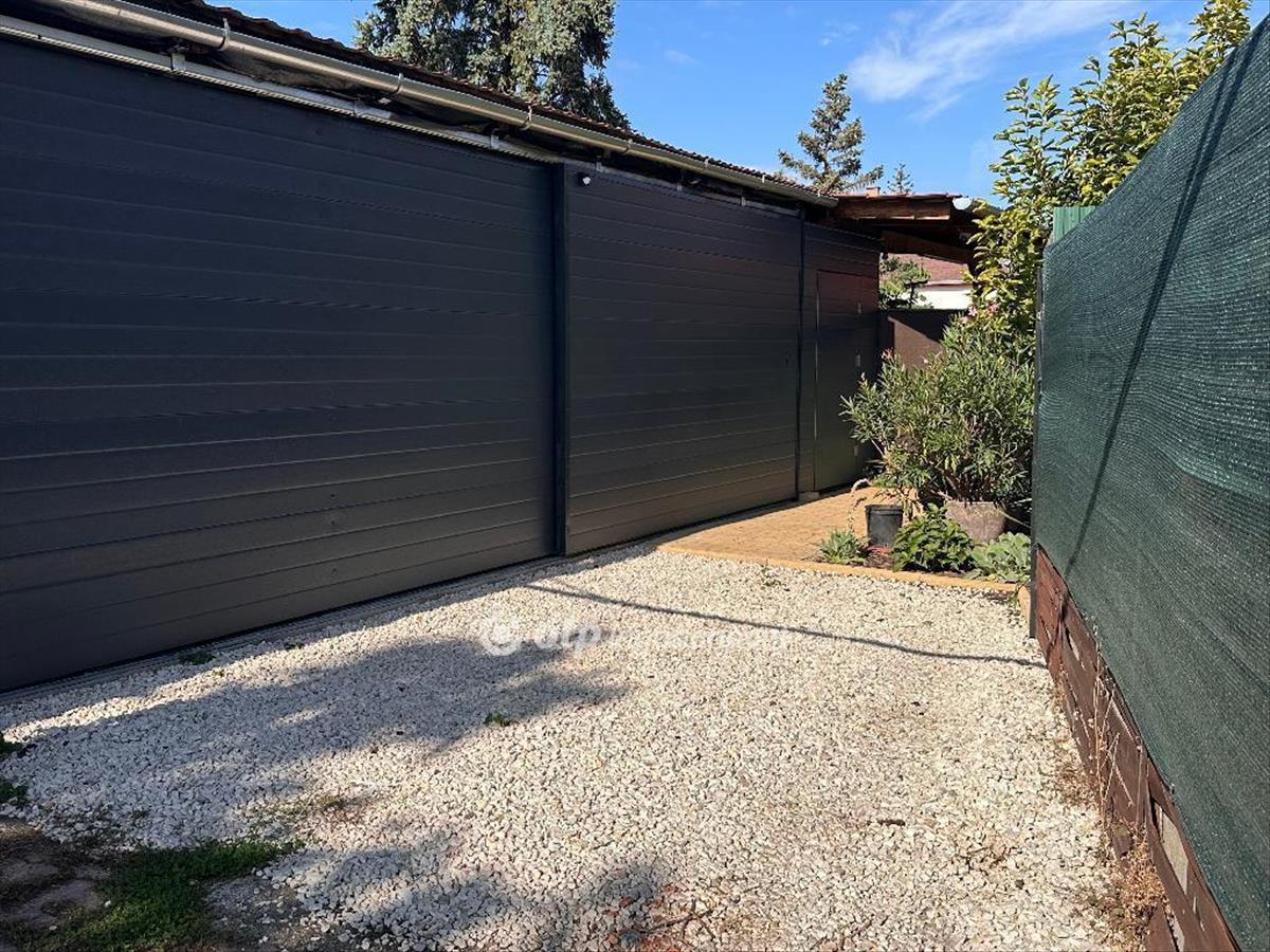 Az ingatlan része a 46 m2-es, két részre osztott garázs motoros kapuval, gépkocsi beállóval, valamint U alakú galériával a praktikus tárolás érdekében és egy kuka tárolóval.