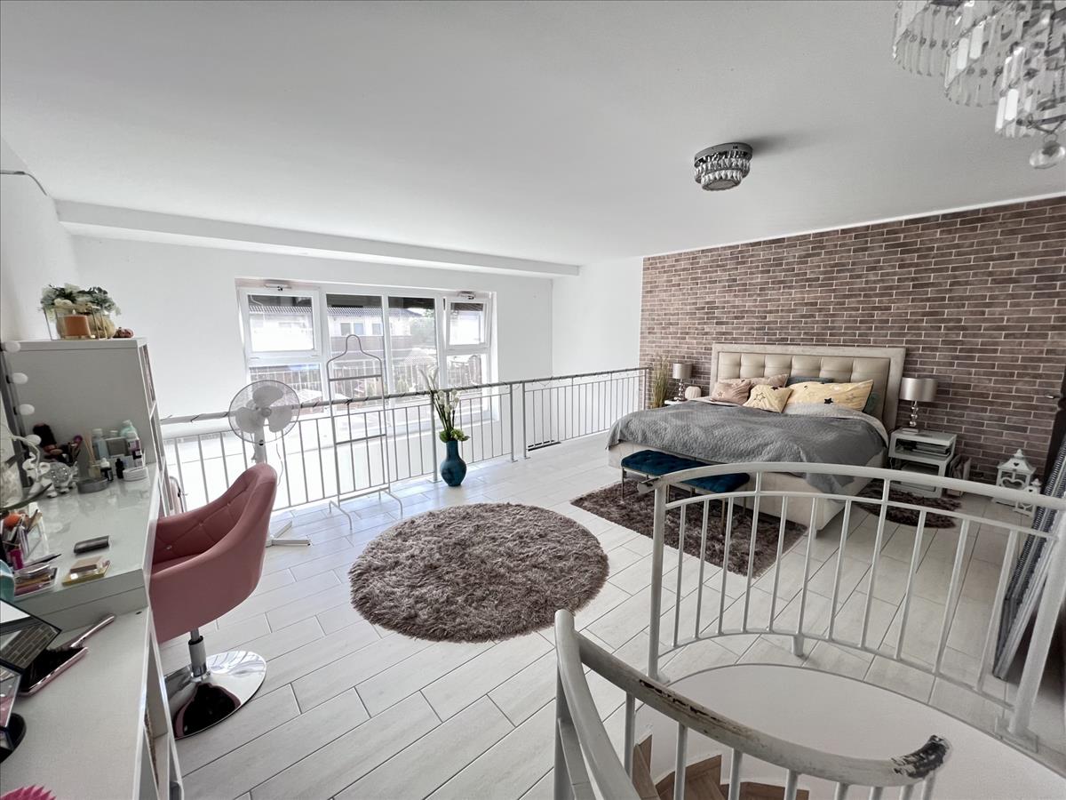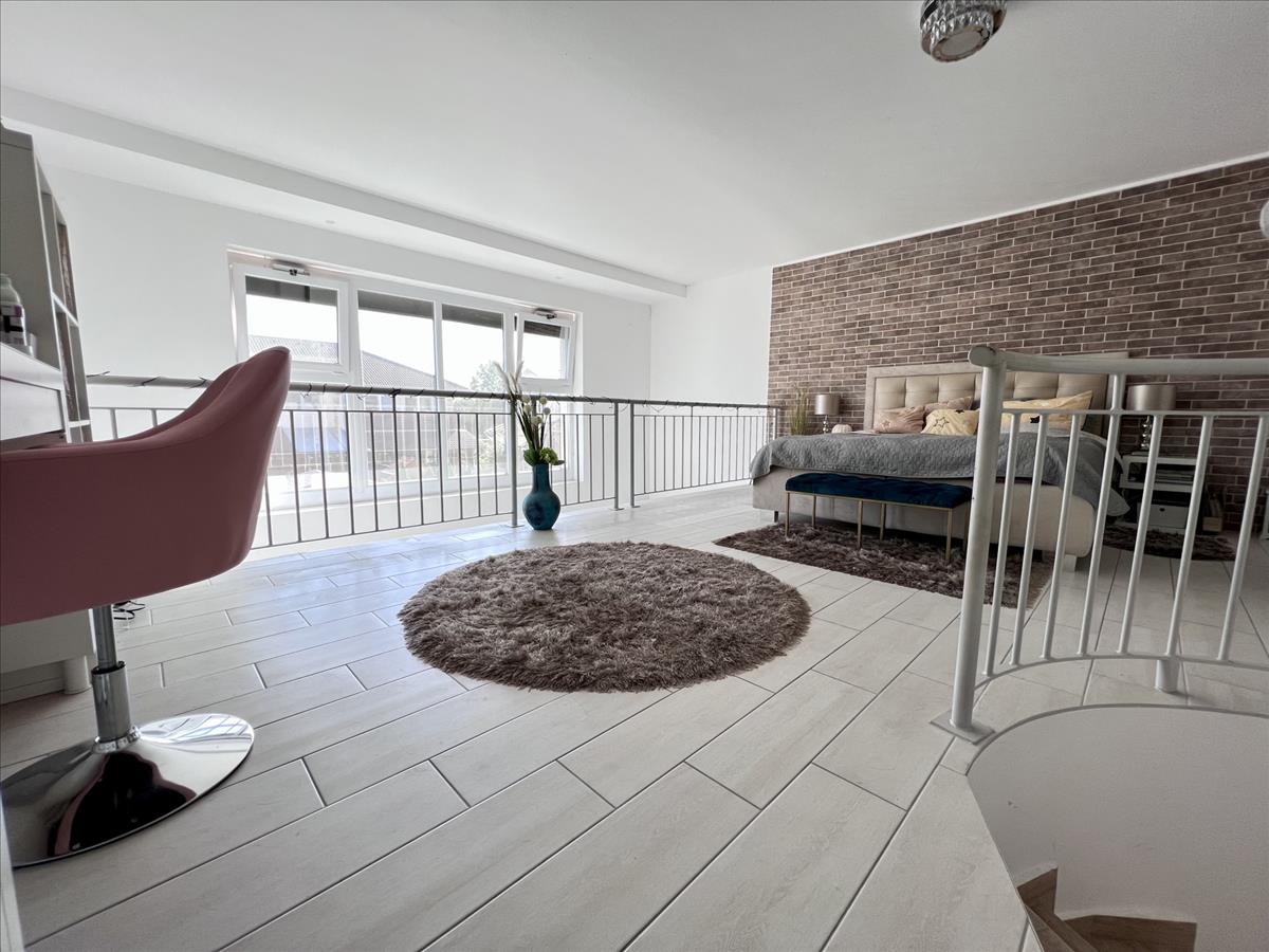 Gallérian nagy méretű hálórész, gardrobe, fürdőszoba lett kialakítva.