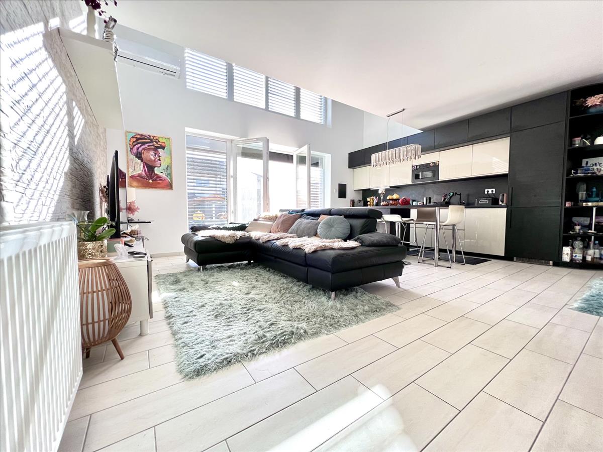 Igazi ritkaság Dunaharaszti ingatlan kínálatában!Bezerédi lakóparkban eladó sorházi lakás, dél-keleti homlokzata teljes üveg felület, nappali felett galériás háló!