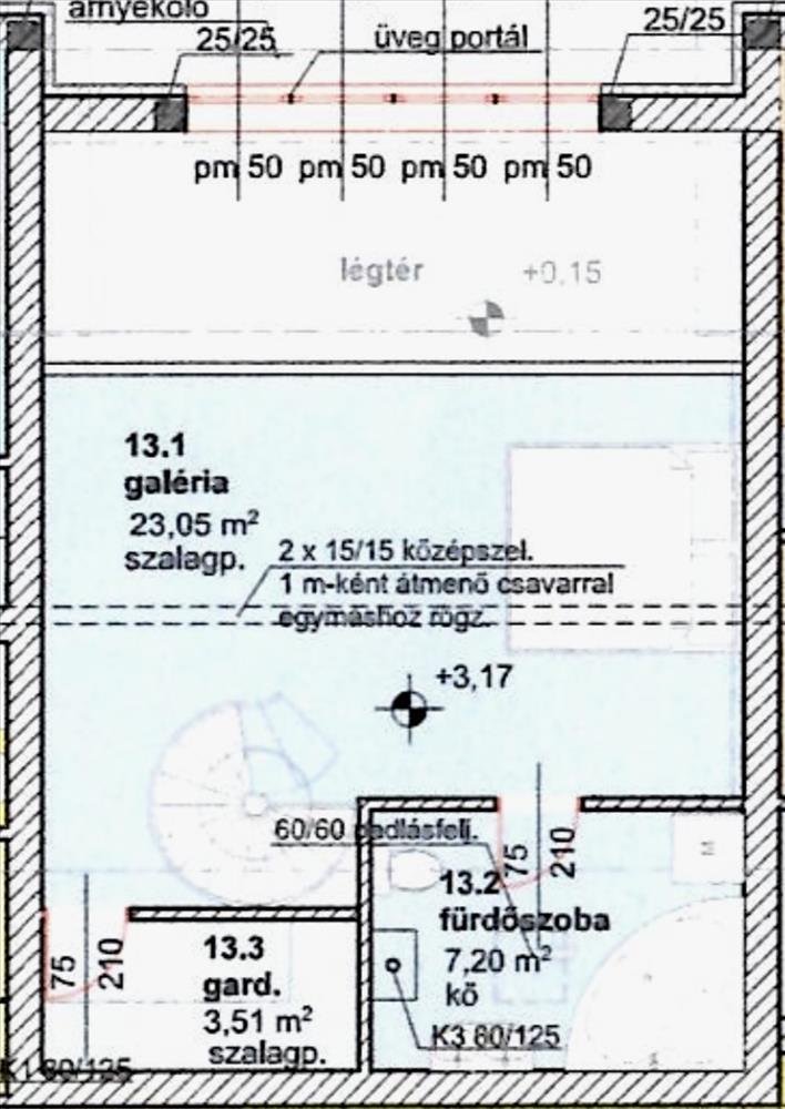 Alsószinten előszoba, szoba, fürdőszoba, wc, am. -Konyha-étkező-nappali 6m belmagassággal.