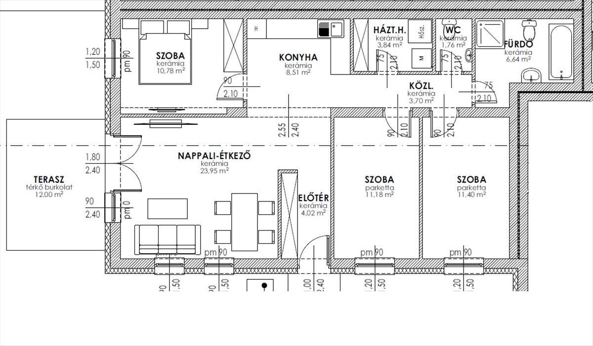 Igény szerint, választhatók a burkolatok, a belső ajtók, szaniterek és a válaszfalak is még variálhatók.