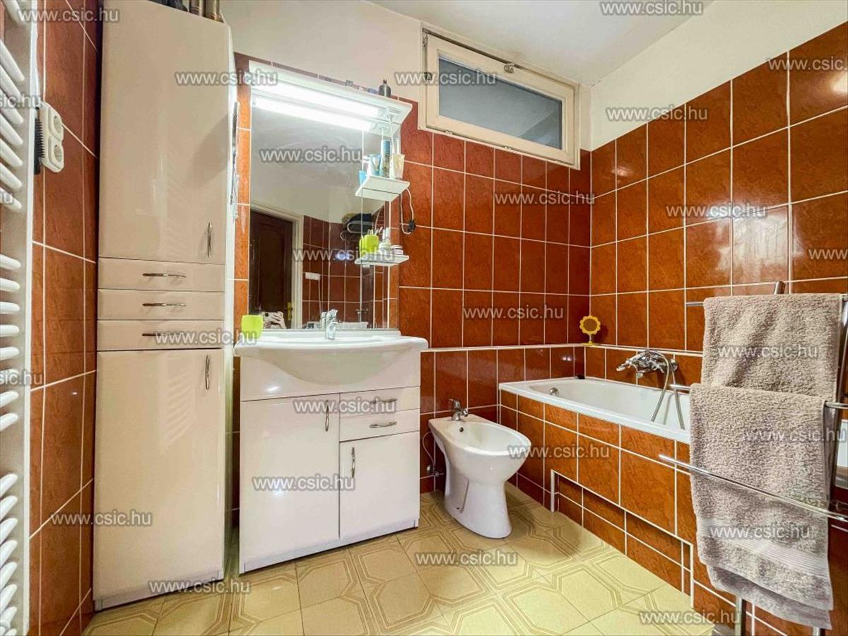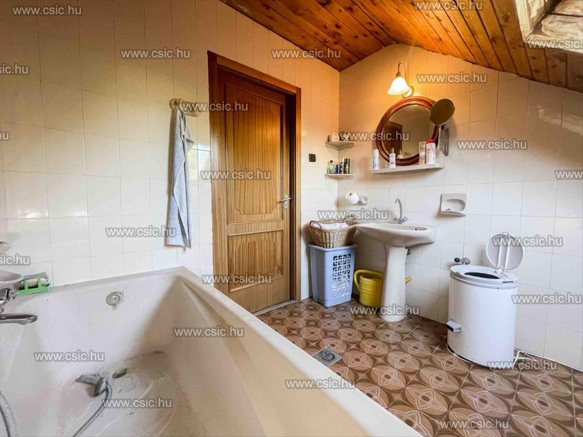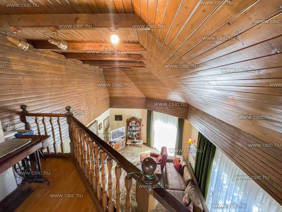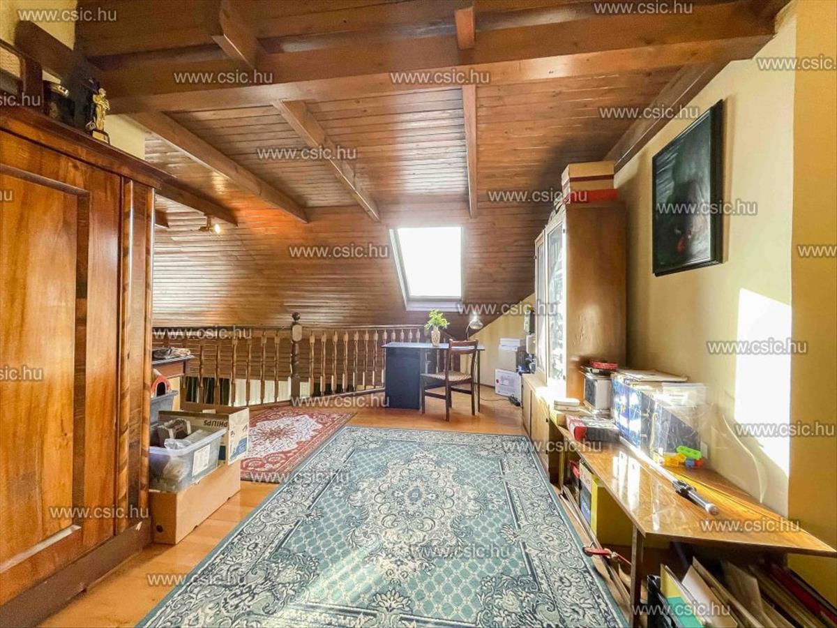 Emellett étkezős konyha, kamra, külön wc, egy 14 m²-es szoba és fürdőszoba található ezen a szinten.
