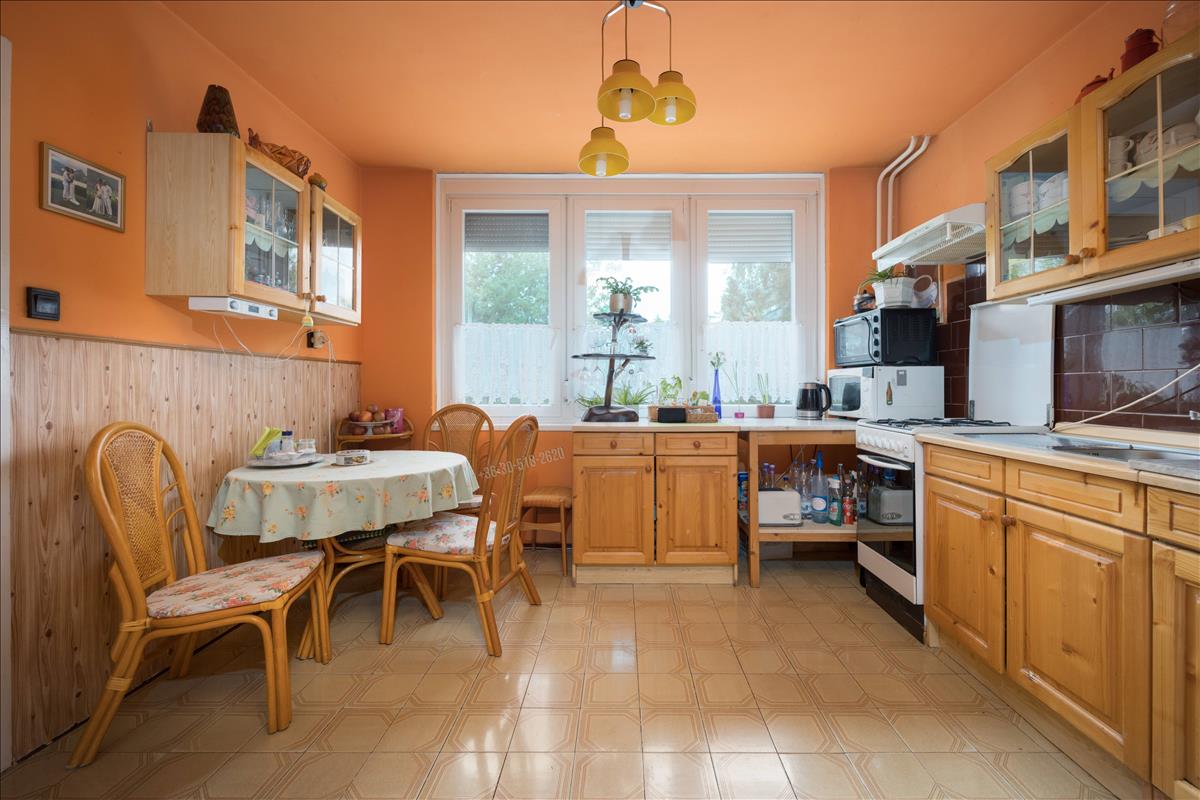 Az épület beton falazattal és részben hőszigeteléssel ellátva épült 1985-ben. a nyílászárói részben fa, részben műanyag típusúak, a fűtésről pedig gázcirkó gondoskodik padlófűtéssel és radiátorokkal. Az ingatlanhoz tartozik még egy 75 négyzetméteres területen elhelyezkedő előkert és autóbeálló. Az épület hátsó kertje a társasház osztatlan közös tulajdona, szépen rendezett és rendszeresen karbantartott.