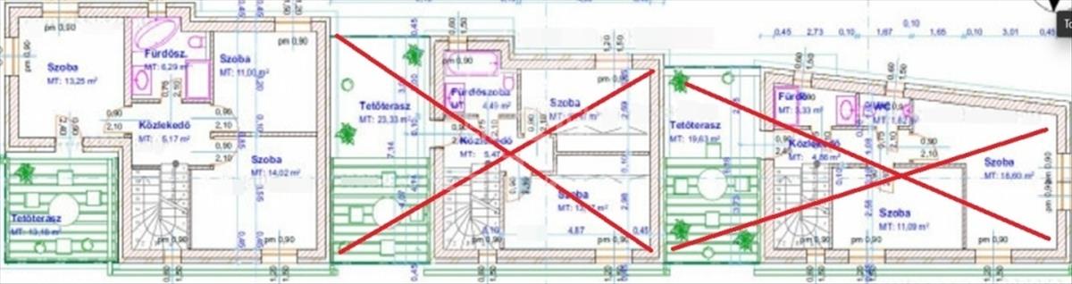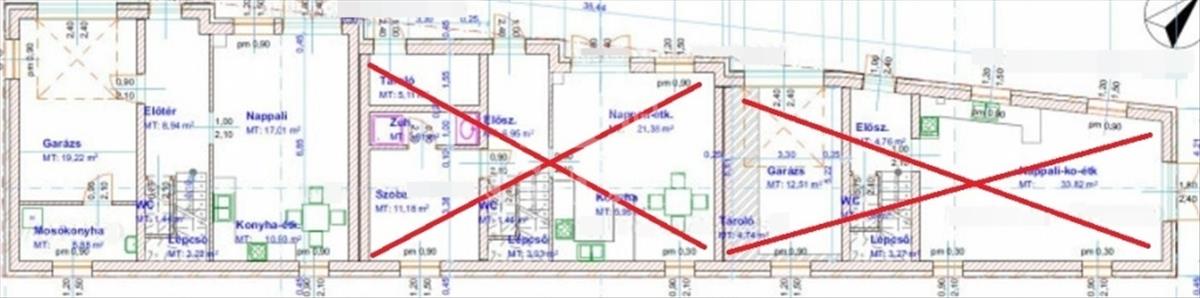 Összesen: 97, 15 nm + garázs 25, 00 nm + terasz 13, 18 nm.
