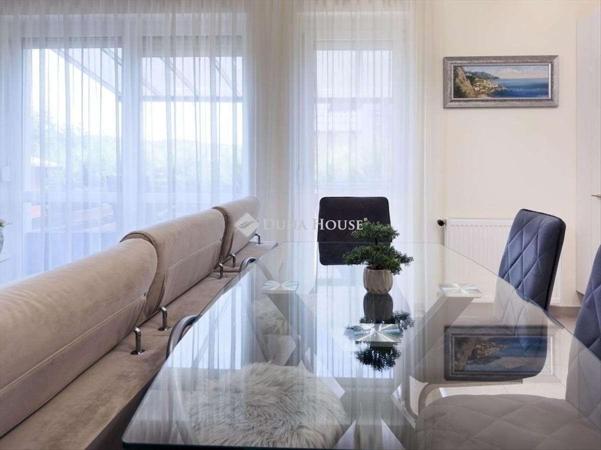 Modern elegancia és nyugalomPanorámás sorházi otthon Fót KirálydombonModern életstílus, nyugodt környezet és időtálló minőség ez az otthon mindezt ötvözi Fót legkedveltebb részén, a Királydombon. Eladó egy 2019-ben épült, újszerű, nappali + 4 szobás sorházi otthon, 100 m²-es lakótérrel, 171 m²-es saját telekkel és 12 m²-es fedett terasszal. a ház a minőség, elegancia és értékállóság tökéletes harmóniáját kínálja ideális választás családoknak, akik szeretnének zöldövezeti nyugalomban élni, mégis Budapest közelében lenni. Amit imádni fog benneNapos, amerikai konyhás nappali közvetlen kapcsolattal a kerthez és teraszhozFelsőkategóriás nobilia konyhabútor, whirlpool beépített gépek és páraelszívóÁtgondolt alaprajz: földszinten tágas nappali, prémium konyha, egy hálószoba, zuhanyzós fürdőszoba, kamra, előszoba található. Az emeleten további 3 hálószoba, egy fürdőszoba és külön mosókonyha Műszaki tartalom és felszereltségAz épület kimagasló minőségben, gondos kivitelezéssel készült - a teljes műszaki tartalom elérhető nálam. Energiahatékony, hőszigetelt műanyag nyílászárók (u=1, 0 W/m²K), redőnnyel és szúnyoghálóvalPadlófűtés, toshiba hűtő-fűtő klíma, riasztórendszer, elektromos kapuZárt csapadékvíz-elvezetés, napelem-előkészítésKét parkolóhely (egy a telken belül, egy az utcafronton)Barna cserépfedésű tető, láng- és gombamentesített fa tetőszerkezetBeige homlokzat, barna lábazattal időtálló, elegáns megjelenésAz épület úgy készült, hogy a későbbiekben napelem és napkollektor is könnyen telepíthető legyen, így az otthon jövőbiztos és energiahatékony. Kiváló elhelyezkedésA ház csendes, forgalomtól mentes utcában található, 5 perc sétára busz- és vasútállomástól, iskolától, óvodától, gyógyszertártól, boltoktól és kávézótól. a környék ideális sportoláshoz, családi sétákhoz és természetközeli élethez. Otthon vagy befektetés Ön döntEz az ingatlan nem csupán otthon, hanem biztonságos, értékálló befektetés is. Kiváló elhelyezkedése és energiatakarékos megoldásai miatt könnyen bérbe adható, így befektetési célra is tökéletes. Ne maradjon le erről a ritka lehetőségről hívjon bizalommal, és tapasztalja meg személyesen, milyen érzés a Királydomb nyugalmában élni! Teljes körű, díjmentes hitelügyintézéssel és ingatlanügyletekre specializált jogi háttérrel segítjük ügyfeleinket a biztonságos döntésben.További információért és a megtekintés időpontjának egyeztetéséhez keressen bizalommal!