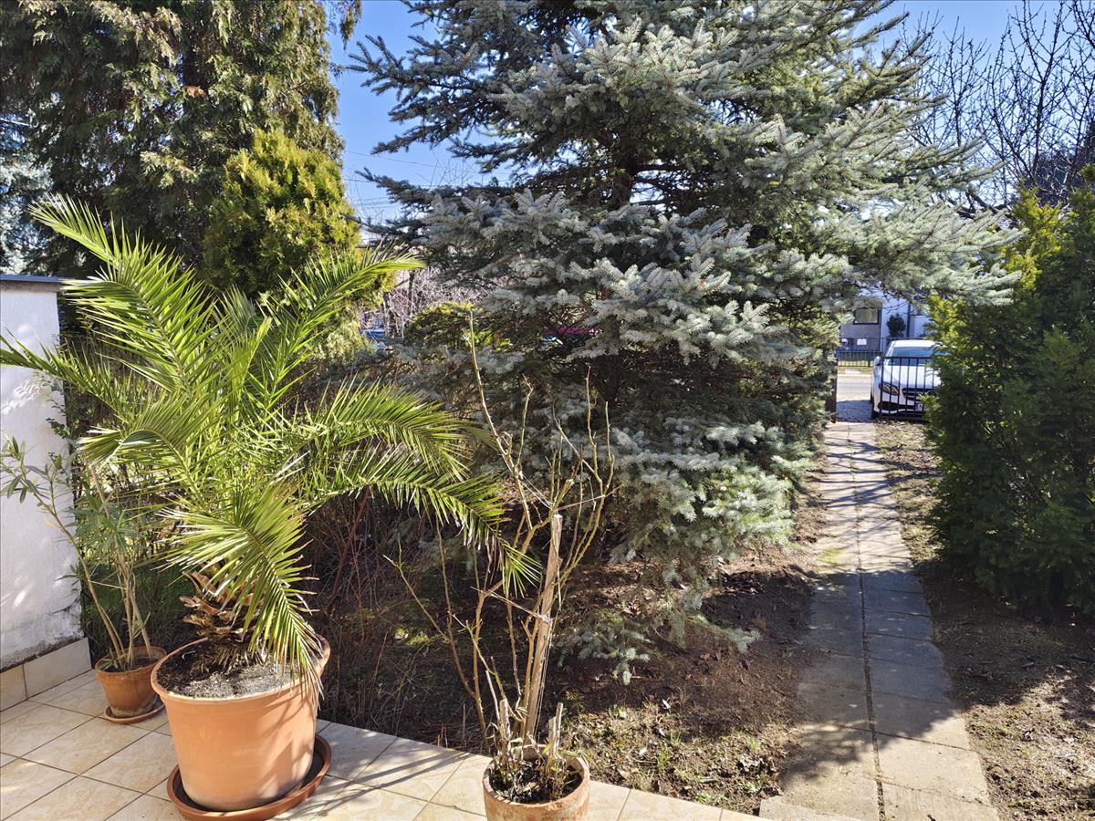 A telek rendezett, az előkert díszfákkal, növényekkel beültetett.