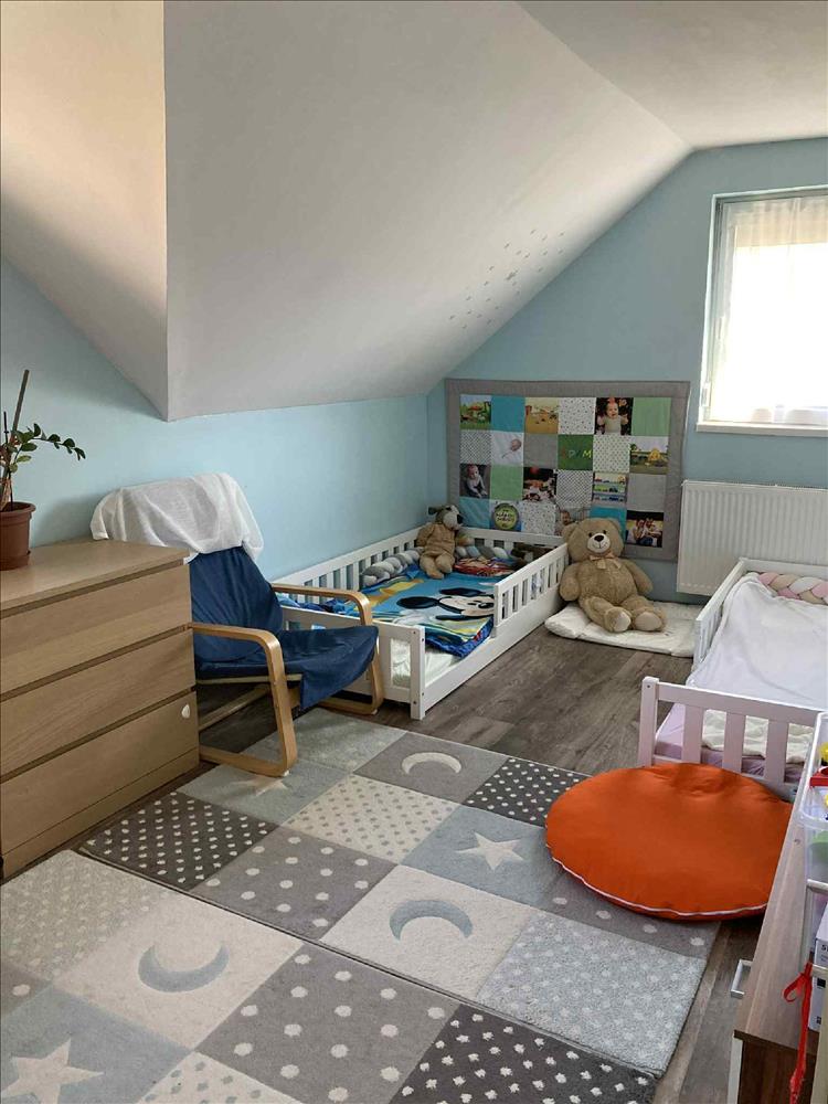 Az emeleten helyezkedik el 3 szoba, kádas fürdőszoba, melyek egy előtérből külön-külön nyílnak. a két szintet egy zárt lépcsőház köti össze.