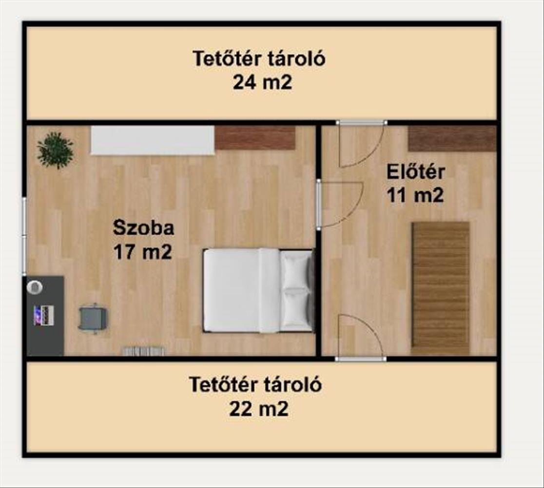 - 93 m² hasznos alapterület (alsó szint 65 m2, felső szint 28 m2)