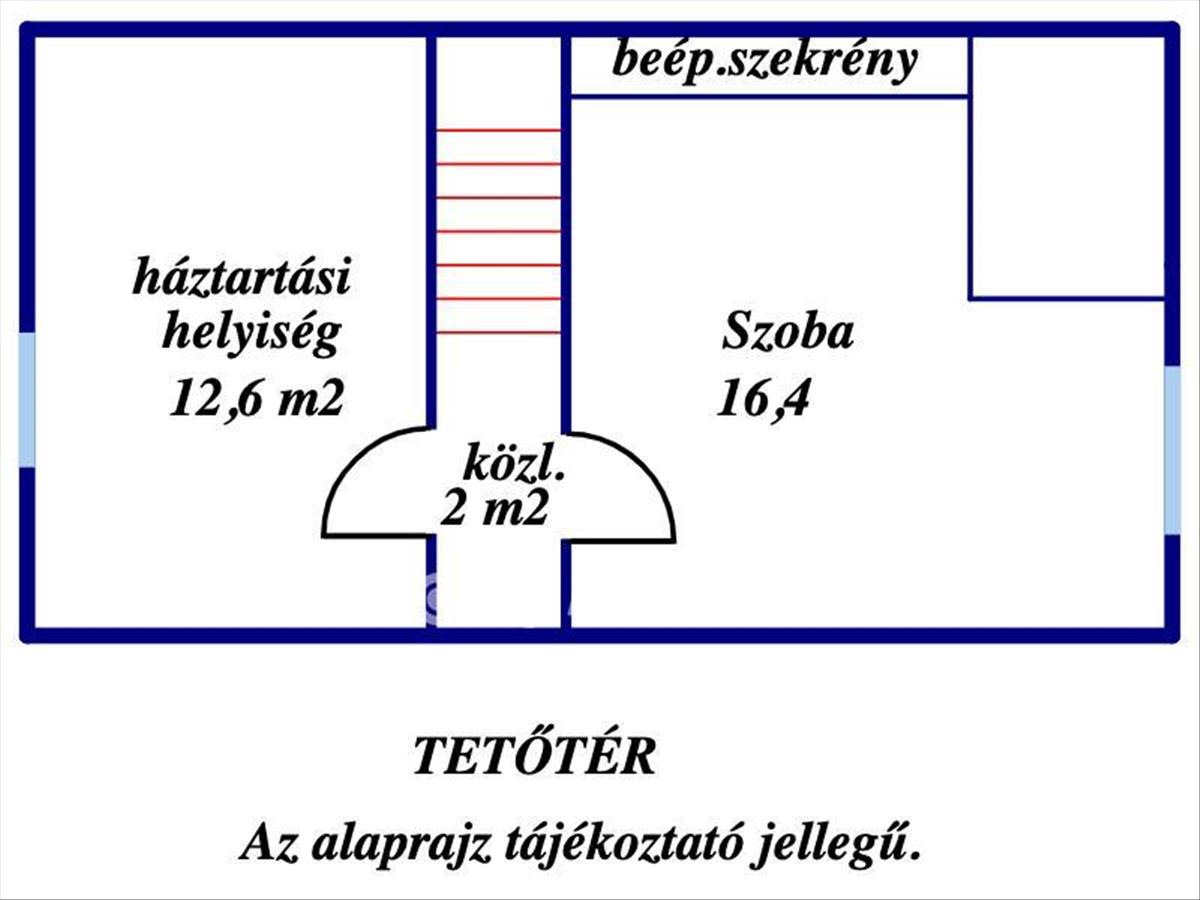 a tetőtérben :egy szoba és egy háztartási helyiség került kialakításra.